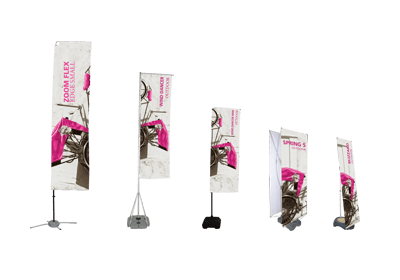 Outdoor display flags come in heights from 8ft to 18ft, and outdoor banner stands are available in retractable, telescopic and x-banner styles.