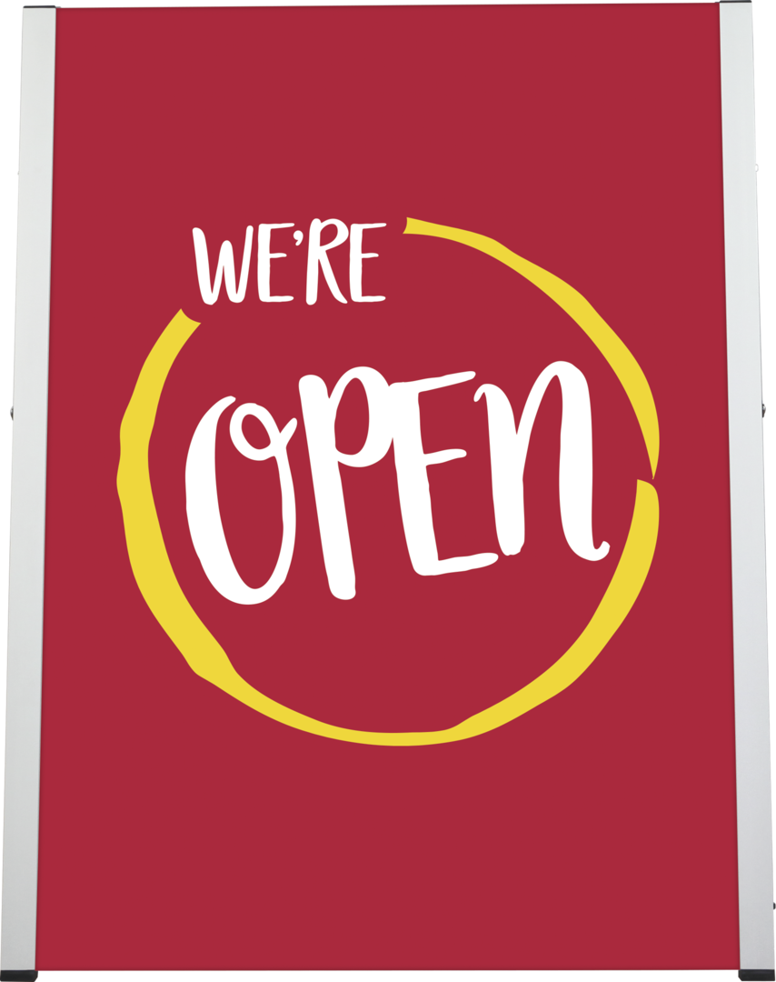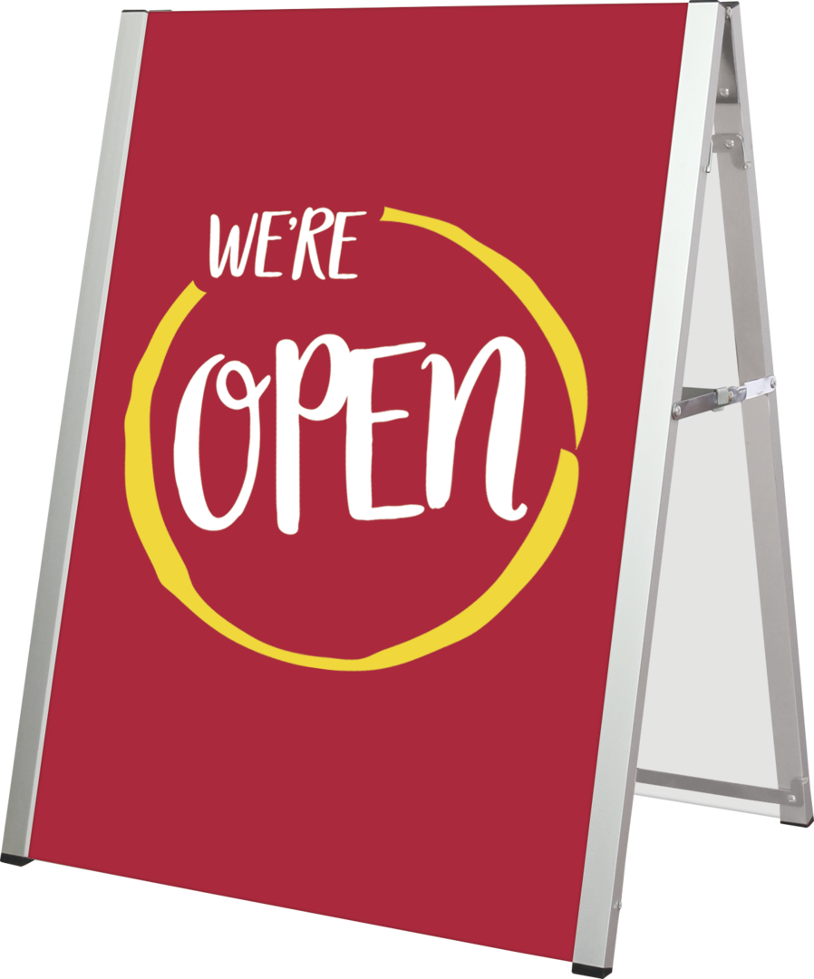 The Ace Eco Outdoor Sign is a foldable A-frame sign ideal for use curbside, near storefronts, on sidewalks and more. The Ace Eco features an aluminum frame that holds two rigid boards. Choose from printed 6mm PVC boards or printed dry-erase boards or both! Simply open the frame, straighten the arms on the sides, and slide the boards into the frame at the top. Dry erase boards can be printed on and allow for messages to be easily written on or erased!