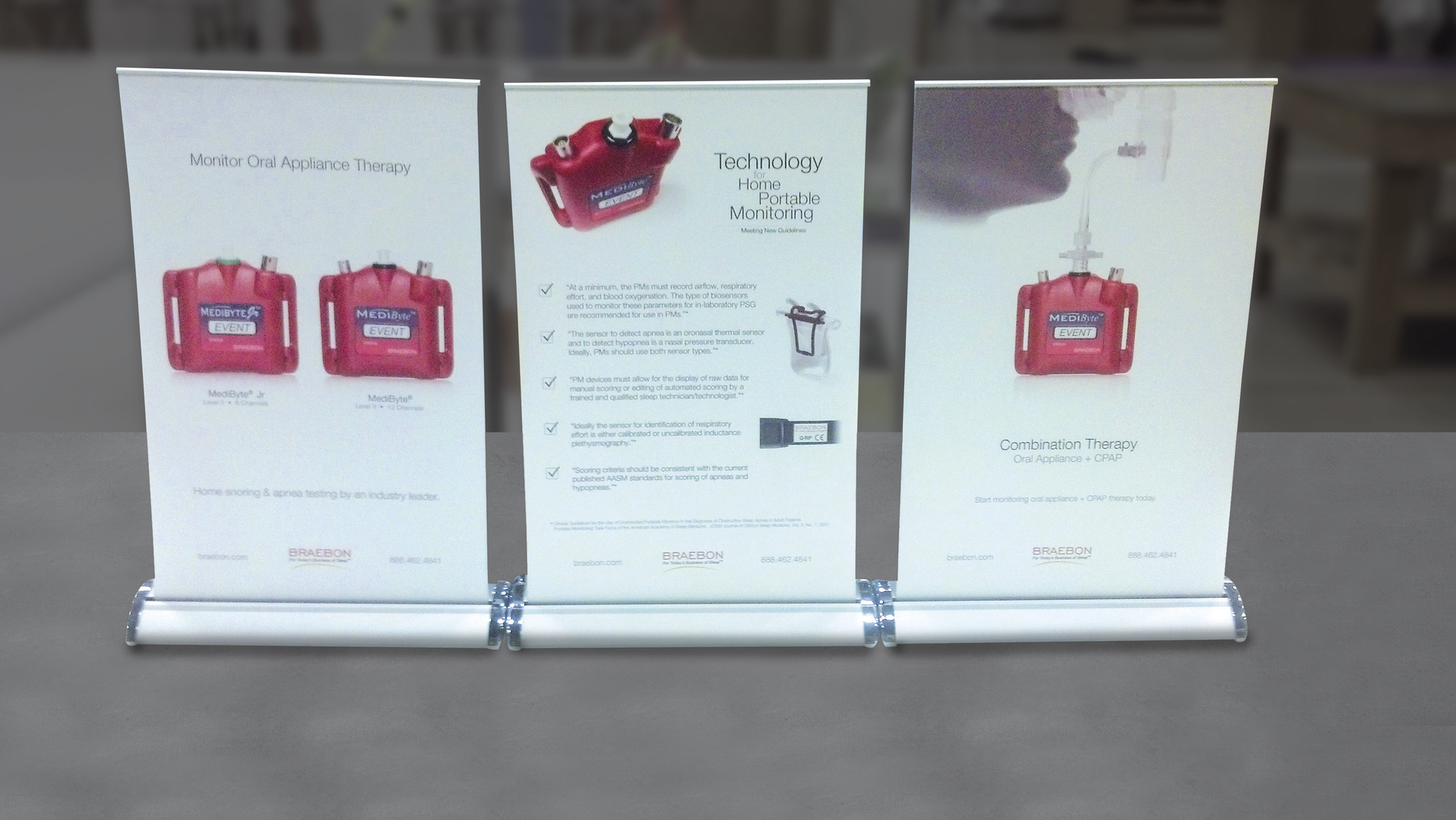 The Breeze 2 retractable banner stand makes for a perfect tabletop display at 11″W by 19″H. Applicable for any display, the Breeze 2 can complement and add to every display, especially useful in exhibits with limited space or extra tabletop display real estate.