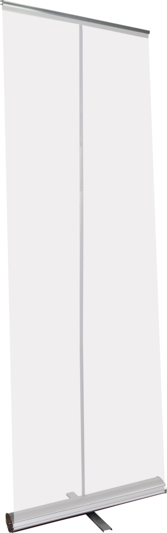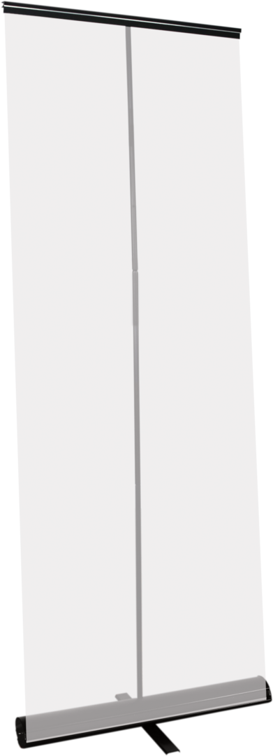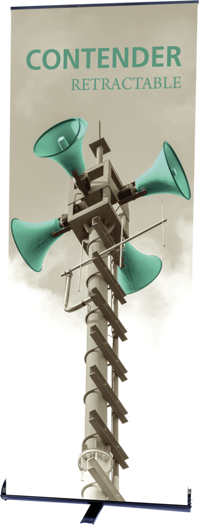 The Contender Standard retractable banner stand is a durable option for your display needs. This display system is highly portable and features a sleek black design with a swivel foot base for stability. The base measures 30.5″ in width and 77.5″ in height, and the banner stand comes with a carry bag. This stand is made in the USA.