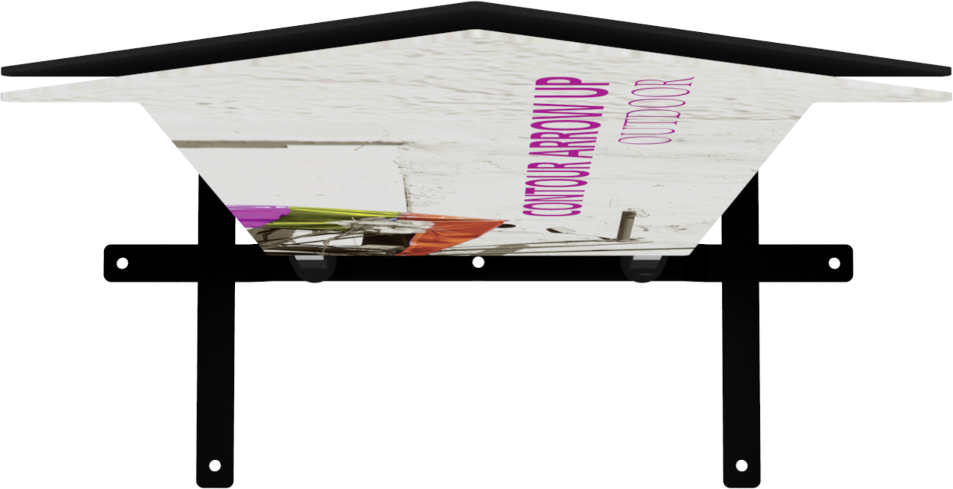 The Contour Arrow Up with steel plate base is a heavy-duty double-sided sign that utilizes hook and loop connections to make graphic changes quick and simple. The discreet plate base comes with four ground stakes for added stability.