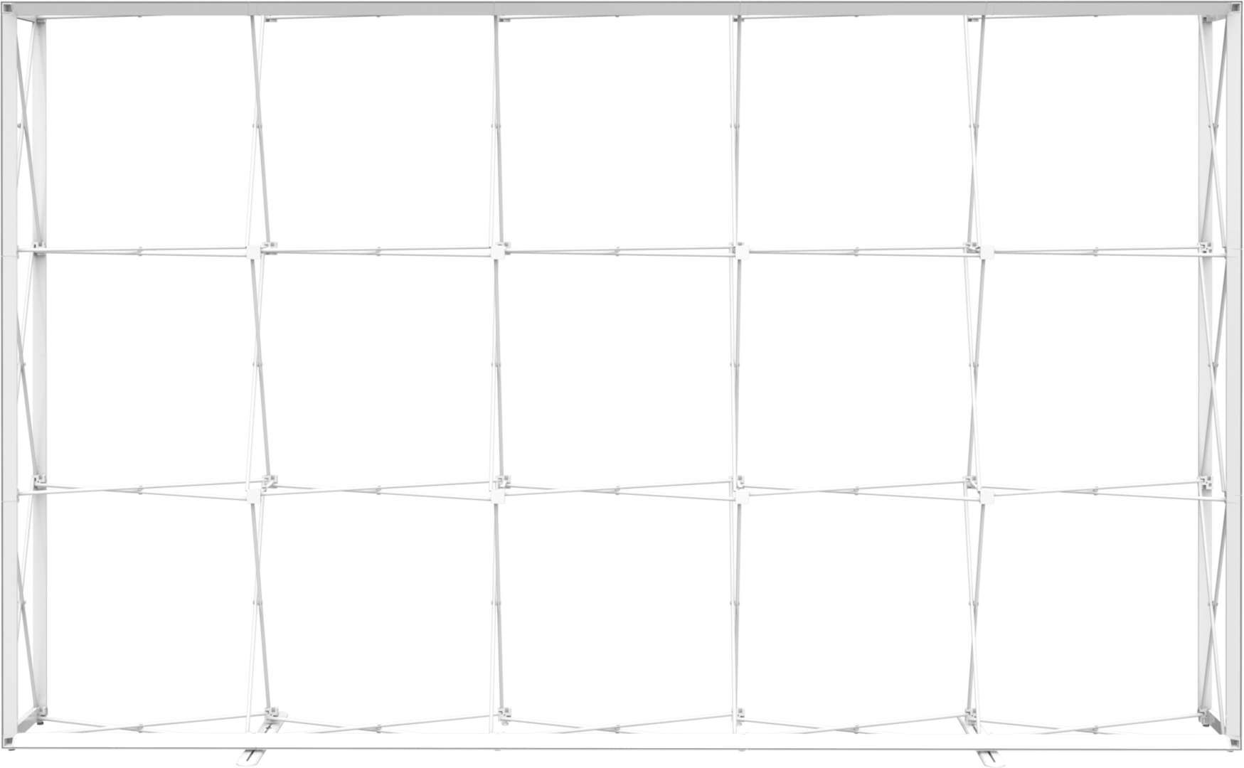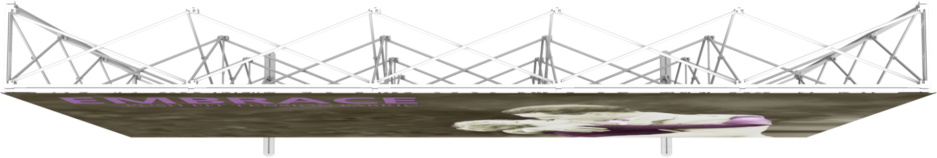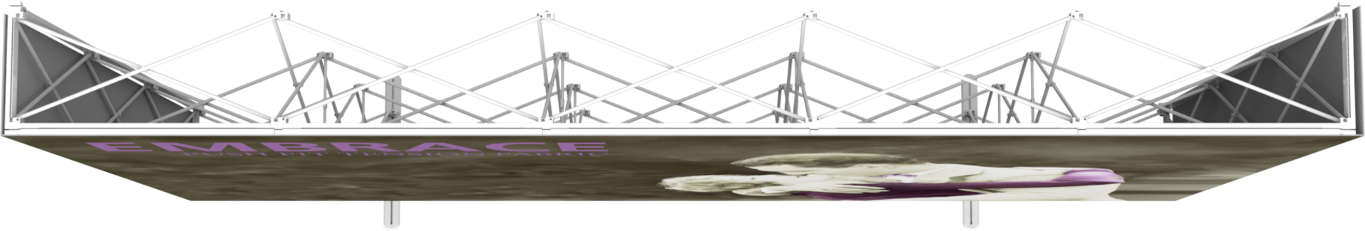 Embrace™ 12.25ft full height (5 Quad x 3 Quad) is a sleek, collapsible, portable display that delivers style with minimal effort. Embrace 12.5ft full height (5 Quad x 3 Quad) features a sleek, collapsible white frame with channel bars that hold push-fit fabric graphics offered with or without endcaps. No tools are required for assembly. The lightweight and highly portable display packs away as easily as it sets up for the ideal tradeshow, event or retail display!