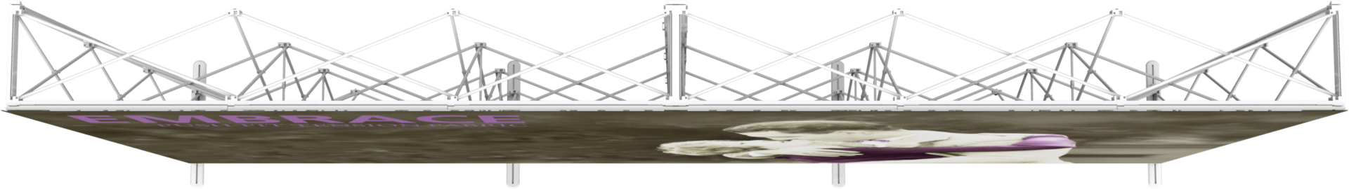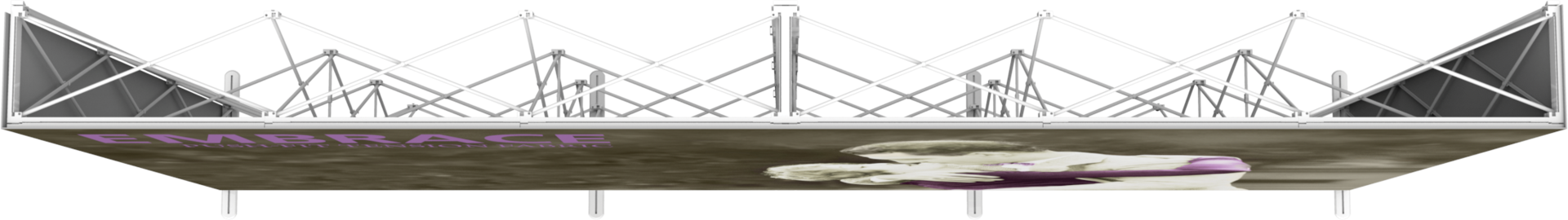 – Perimeter channel bars connect to frame and hold push-fit fabric graphics