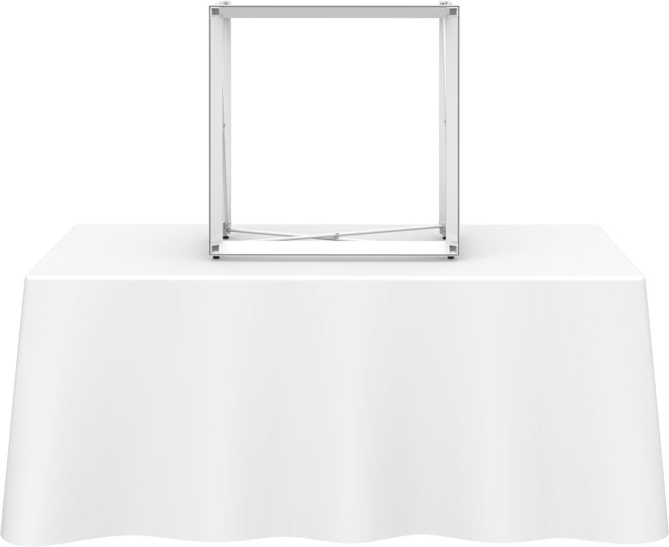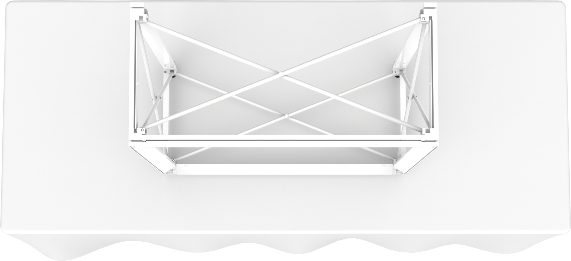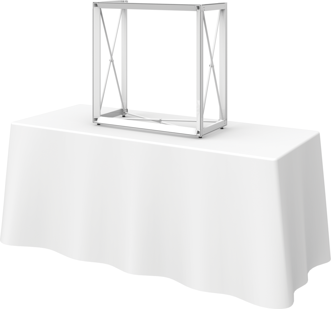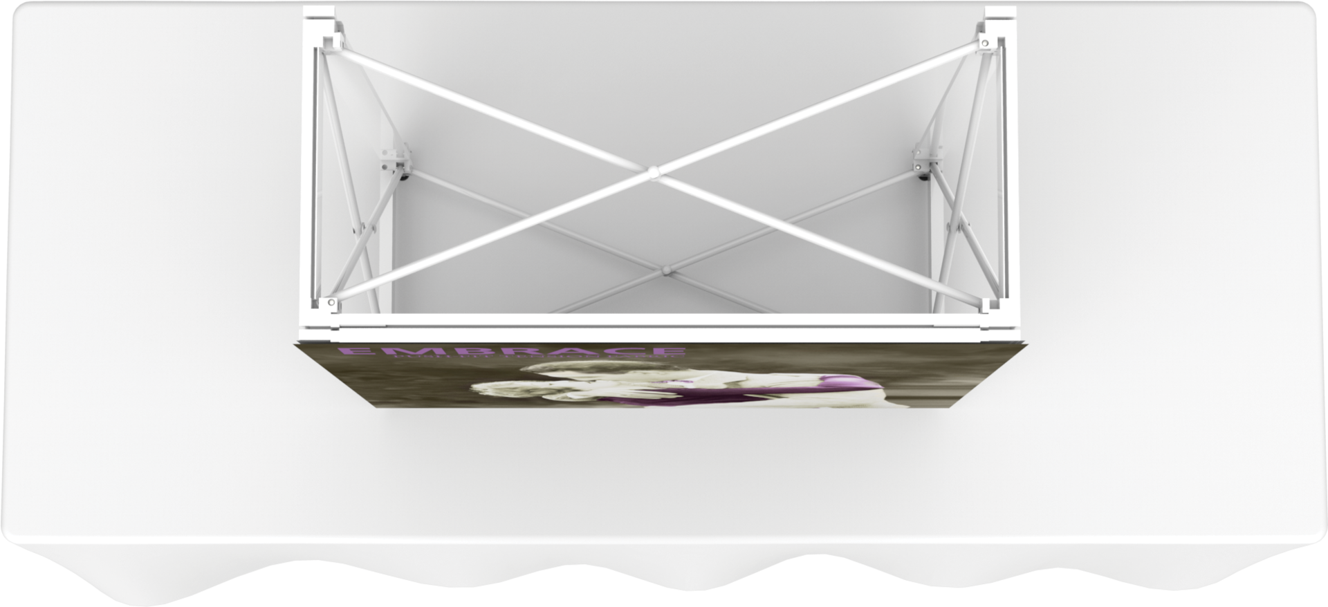 – Perimeter channel bars connect to frame and hold push-fit fabric graphics