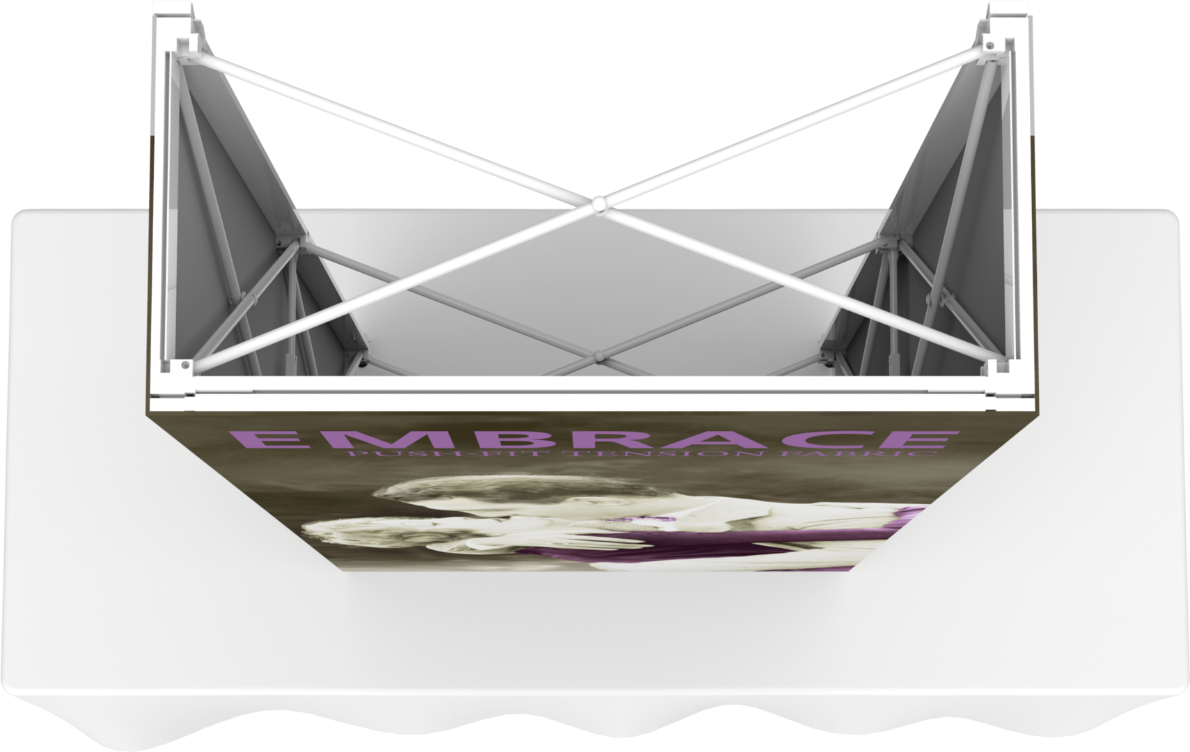 – Perimeter channel bars connect to frame and hold push-fit fabric graphics