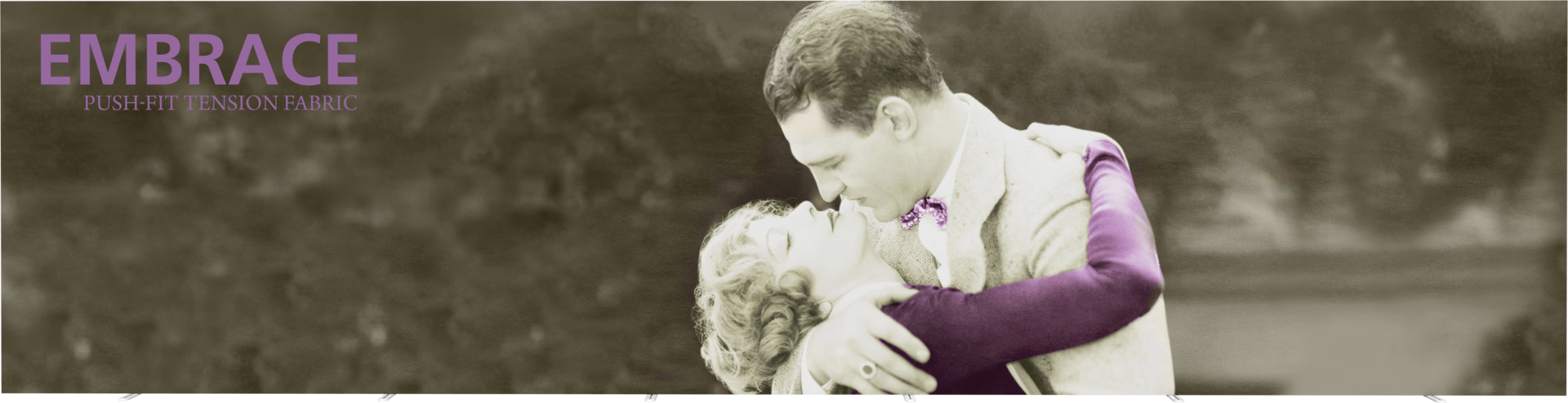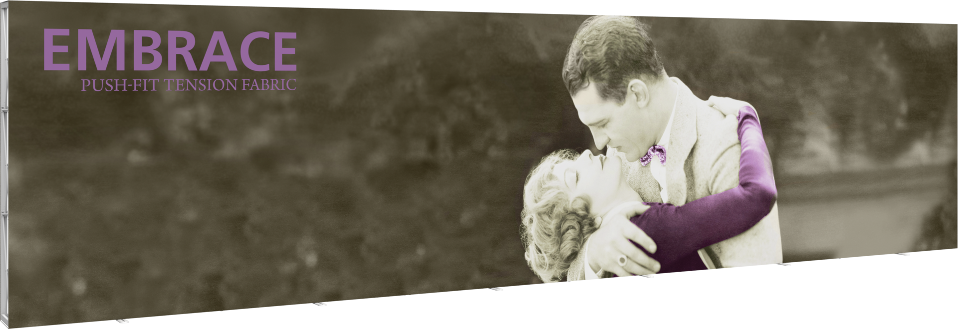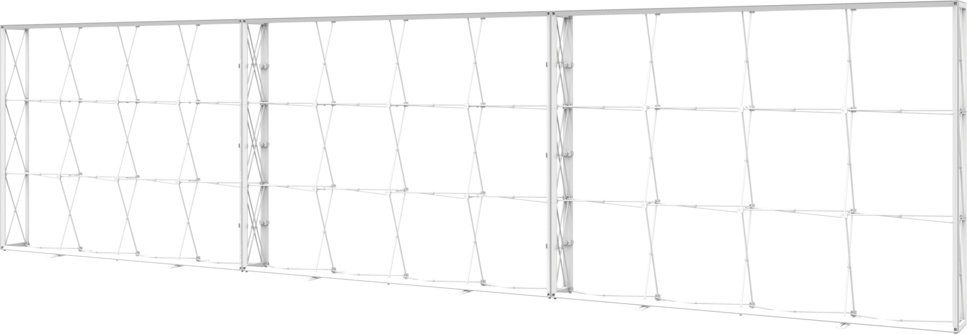 – Perimeter channel bars connect to frame and hold push-fit fabric graphics