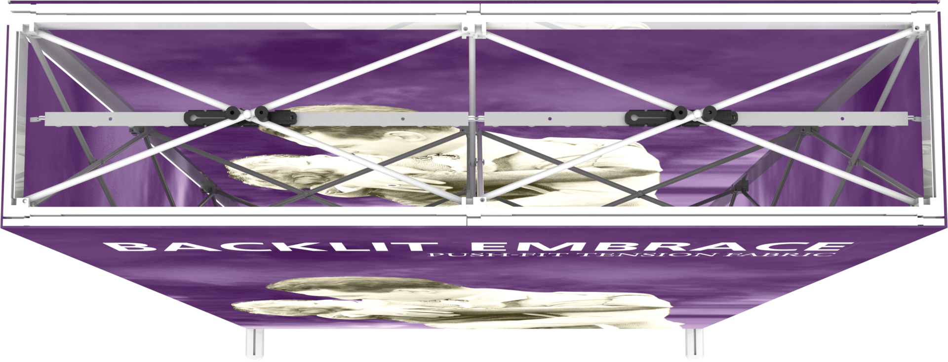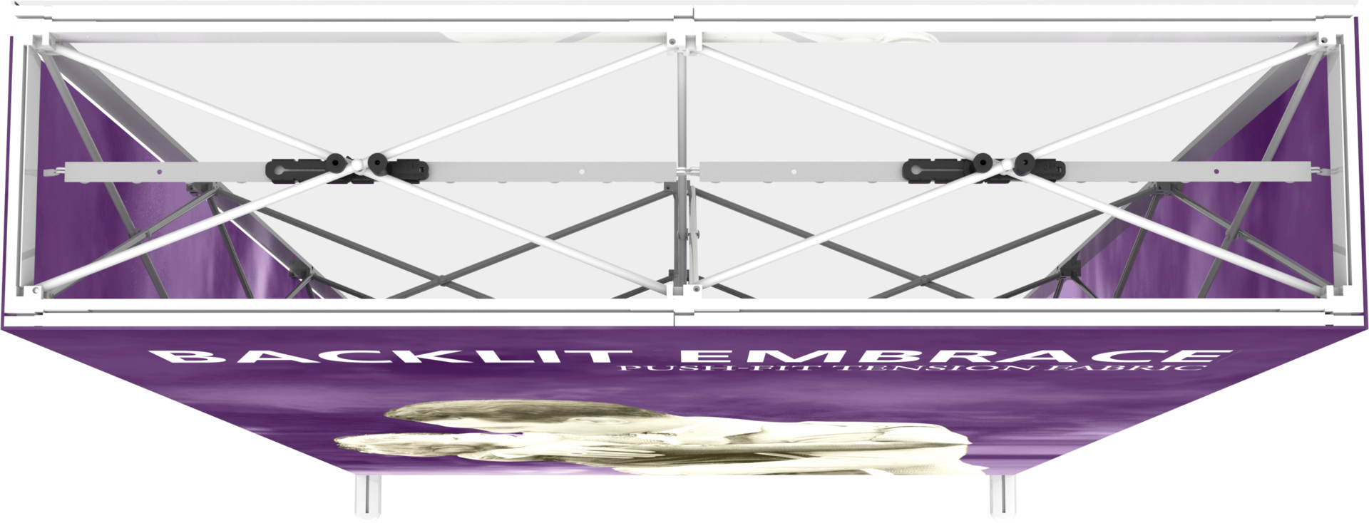 – Perimeter channel bars connect to frame and hold push-fit backlit fabric graphics