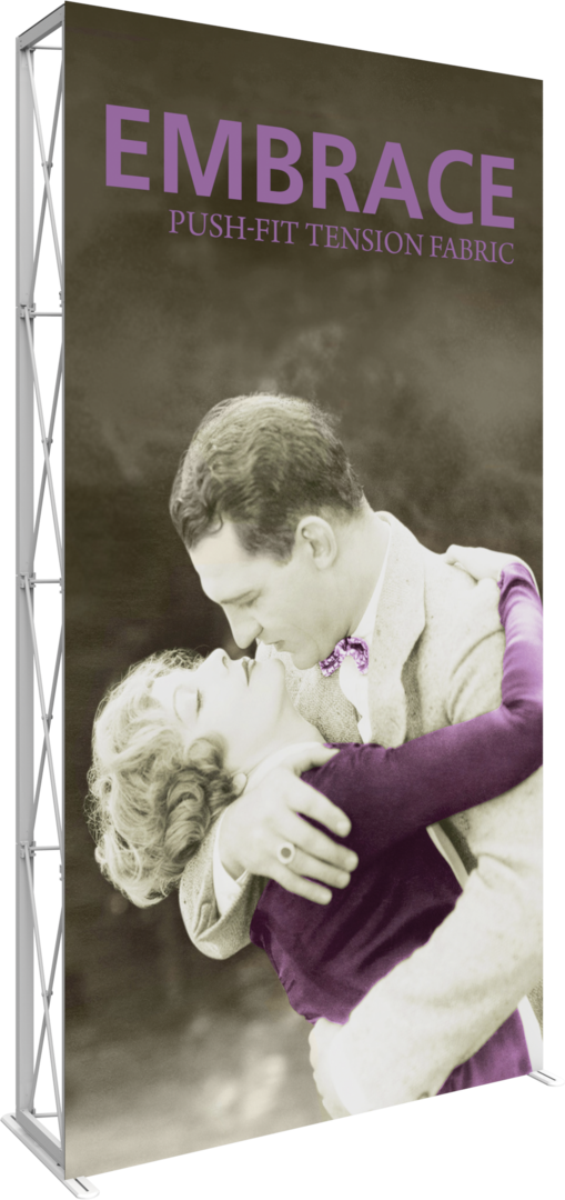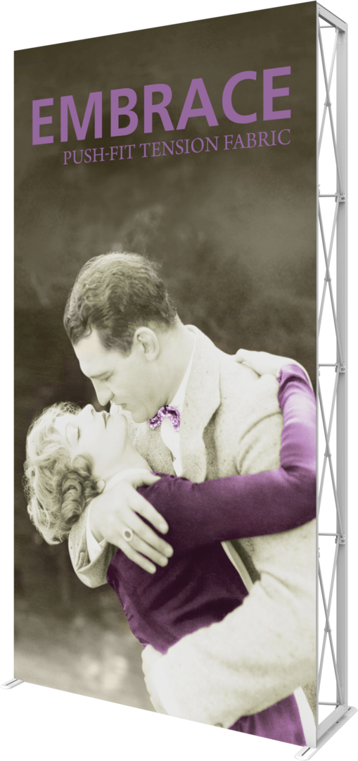 – Perimeter channel bars connect to frame and hold push-fit fabric graphics