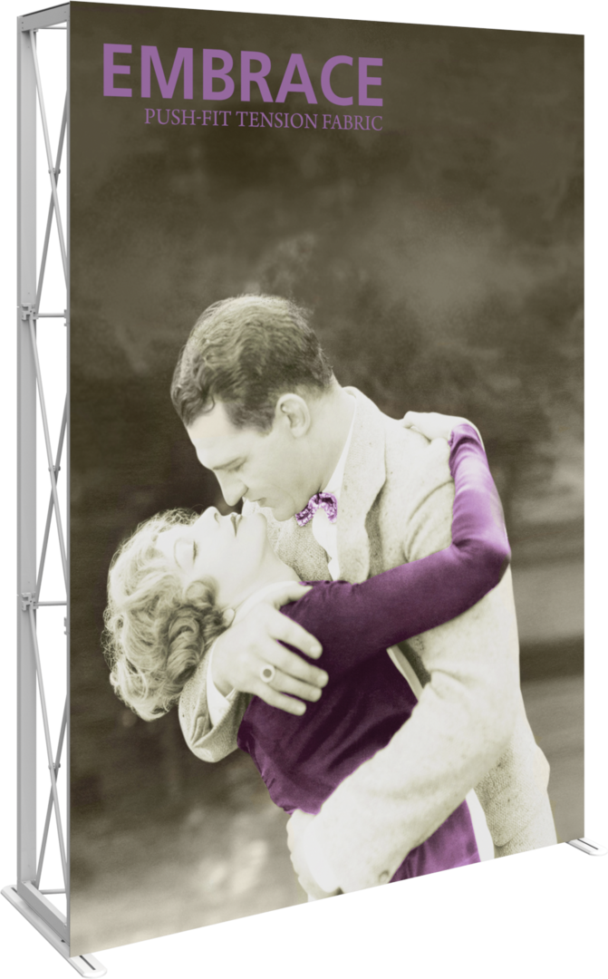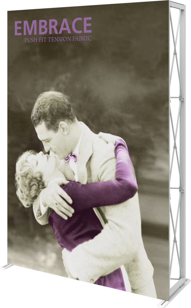 Embrace™ 5ft full height (2 Quad x 3 Quad) is a sleek, collapsible, portable display that delivers style with minimal effort. Embrace 5ft full height (2 Quad x 3 Quad) features a sleek, collapsible white frame with channel bars that hold push-fit fabric graphics offered with or without endcaps. No tools are required for assembly. The lightweight and highly portable display packs away as easily as it sets up for the ideal tradeshow, event or retail display!