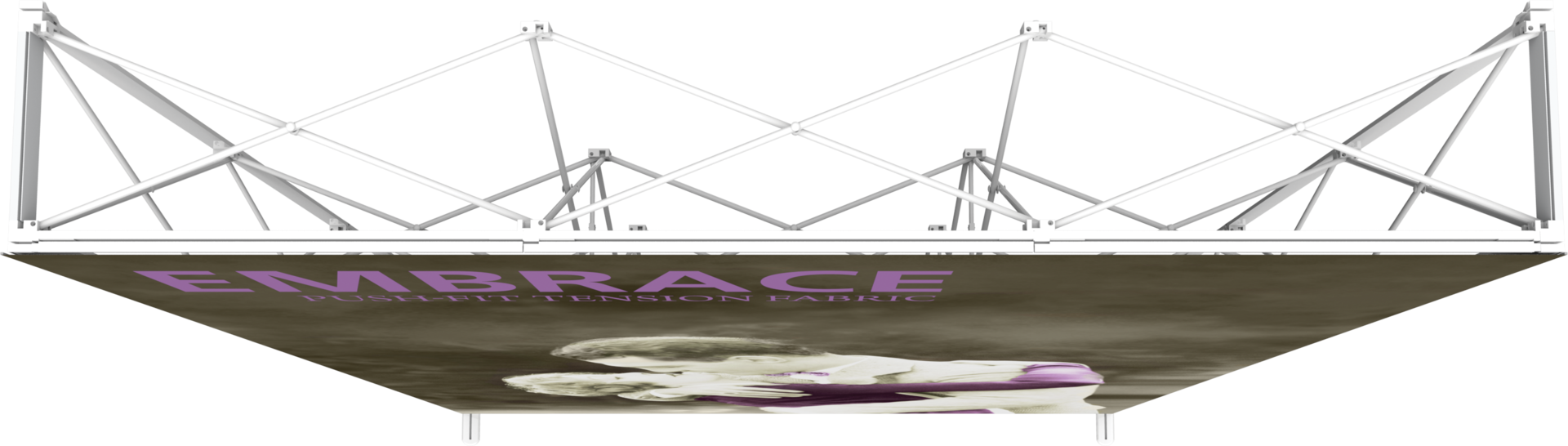 Embrace™ 7.5ft extra tall (3 Quad x 4 Quad) is a sleek, collapsible, portable display that delivers style with minimal effort. Embrace 7.5ft extra tall (3 Quad x 4 Quad) features a sleek, collapsible white frame with channel bars that hold push-fit fabric graphics offered with or without endcaps. No tools are required for assembly. The lightweight and highly portable display packs away as easily as it sets up for the ideal tradeshow, event or retail display!