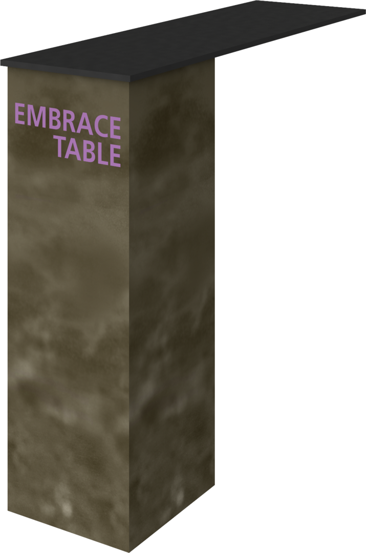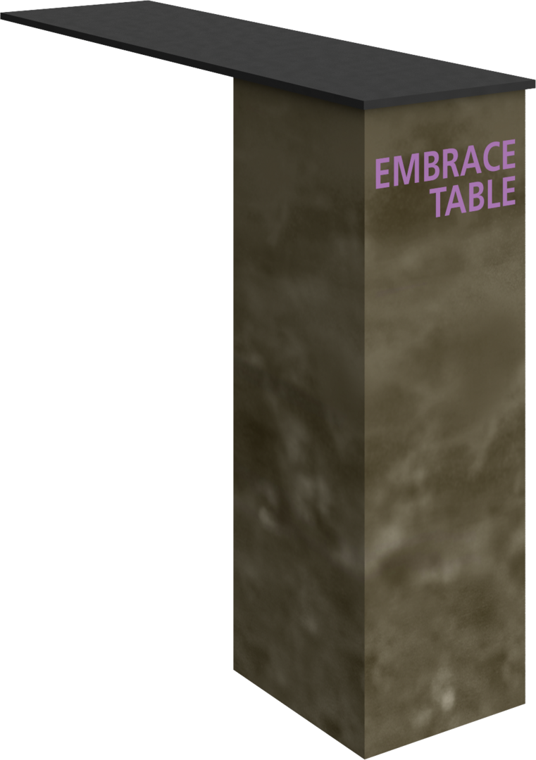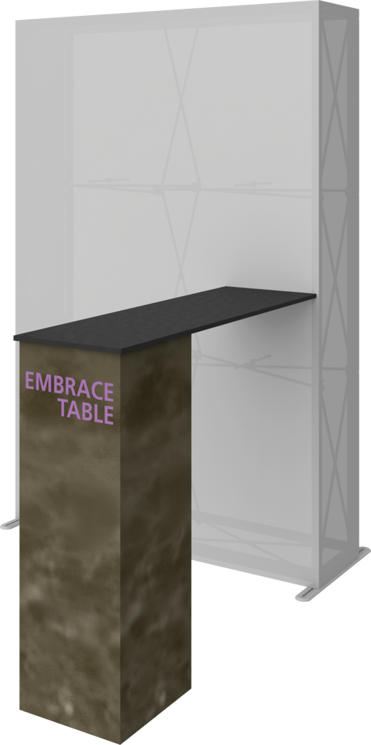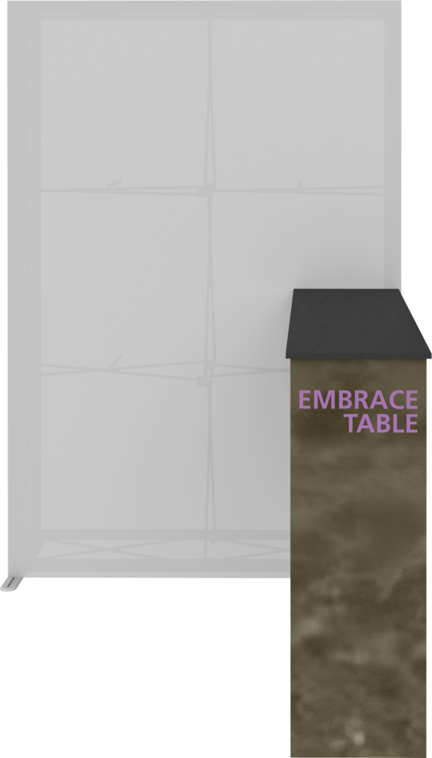 The Embrace™ Table is a sleek, collapsible return table that delivers style, functionality and storage to any Embrace backwall display. Featuring the same white expandable frame and push-fit SEG graphics as Embrace backwalls, this lightweight and portable accessory is the perfect accent. Tabletop offered in black for a modern appearance.