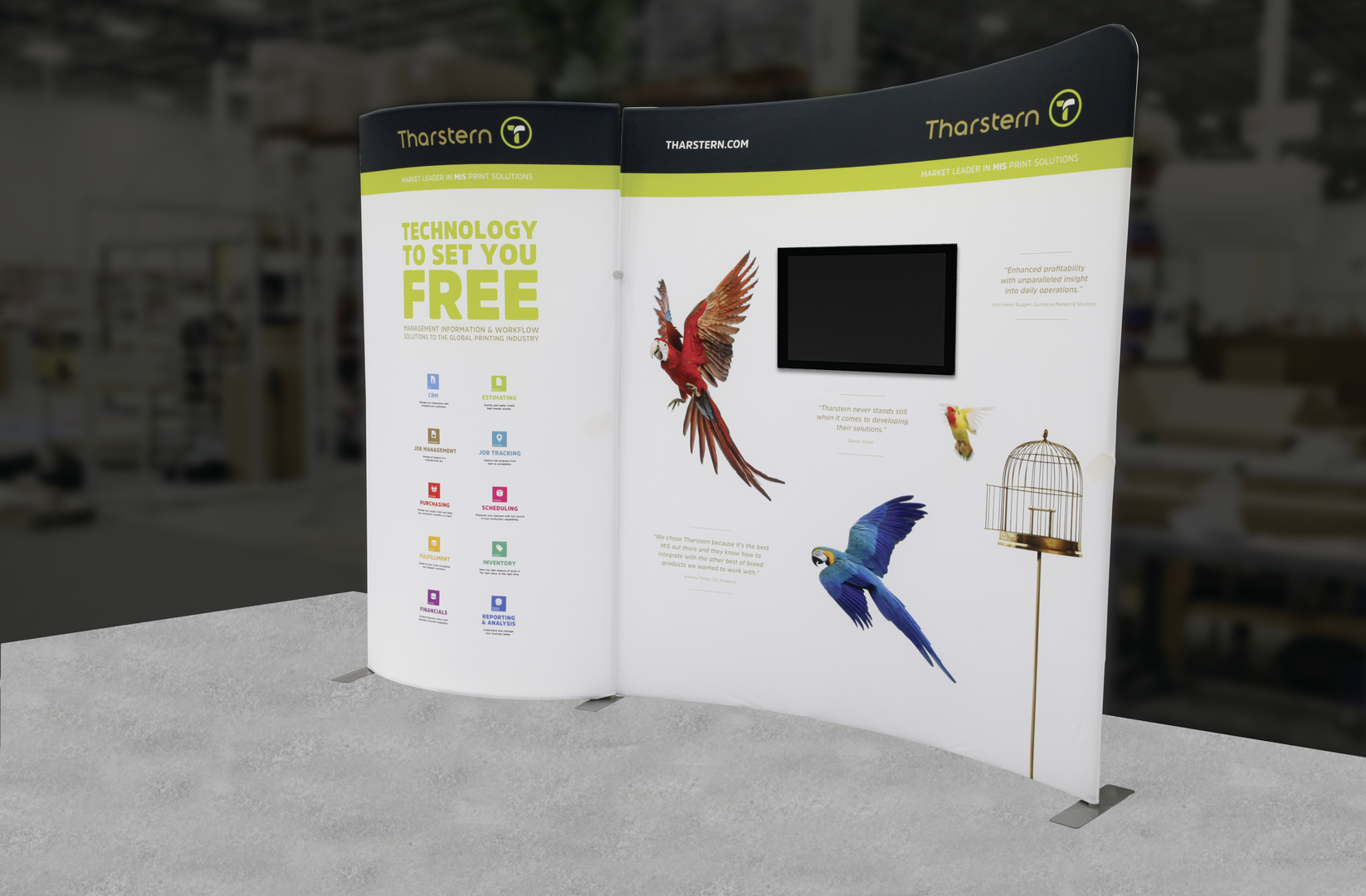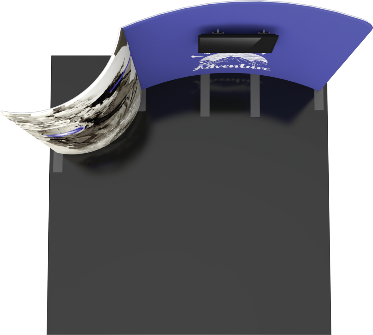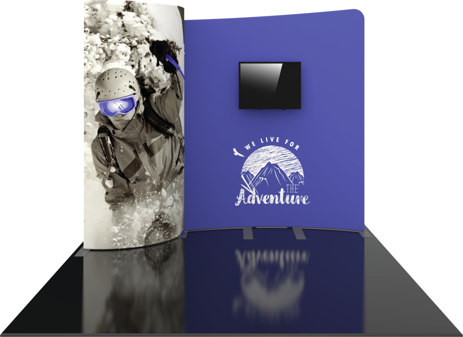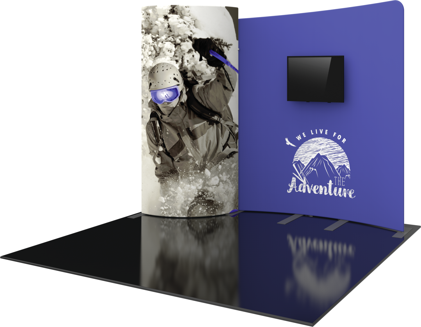Formulate® Designer Series 10ft Fabric backwall Kit 01 has unique stylistic features and shapes, is portable and is easy to assemble. The two aluminum tube frames feature spigot connections and zipper pillowcase fabric graphics. A curved panel draws the eye, and integrated monitor mount that holds a medium monitor makes it easy to incorporate digital messaging. Designer Series Kit 01 comes in two portable, wheeled transit cases for easy storage and transport. Assembly and graphic attachment is easy – simply pull the pillowcase fabric graphics over the frame and zip.