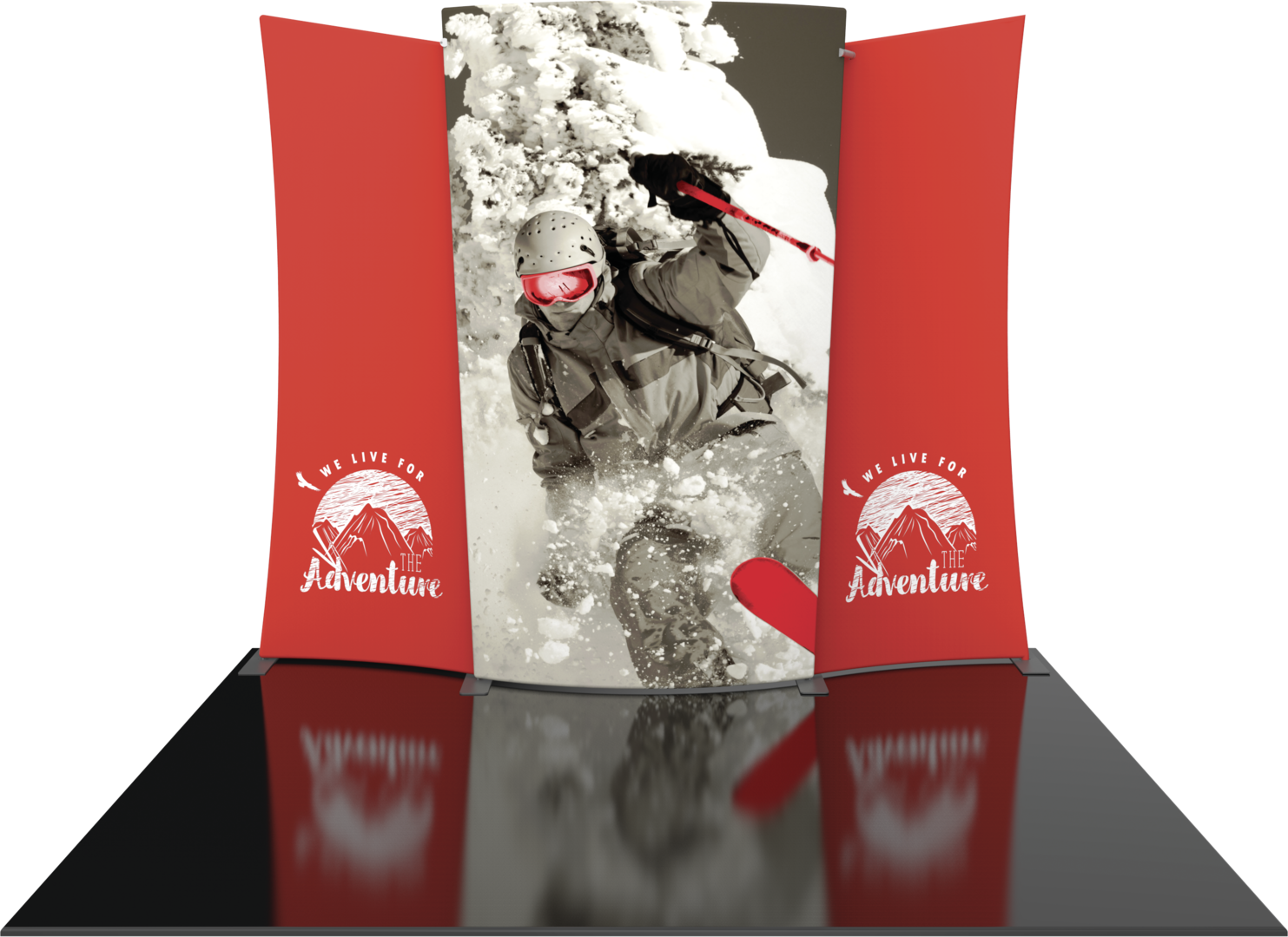 Formulate® Designer Series 10ft Fabric backwall Kit 05 is modern, sleek and will make your message and brand stand out from the rest. This contemporary exhibit includes three aluminum tube frames featuring spigot connections and simple pullover zipper pillowcase fabric graphics. Designer Series Kit 05 comes in a portable, expandable wheeled transit case for easy storage and transport. Assembly and graphic attachment is easy – simply pull the pillowcase fabric graphics over the frame and zip.