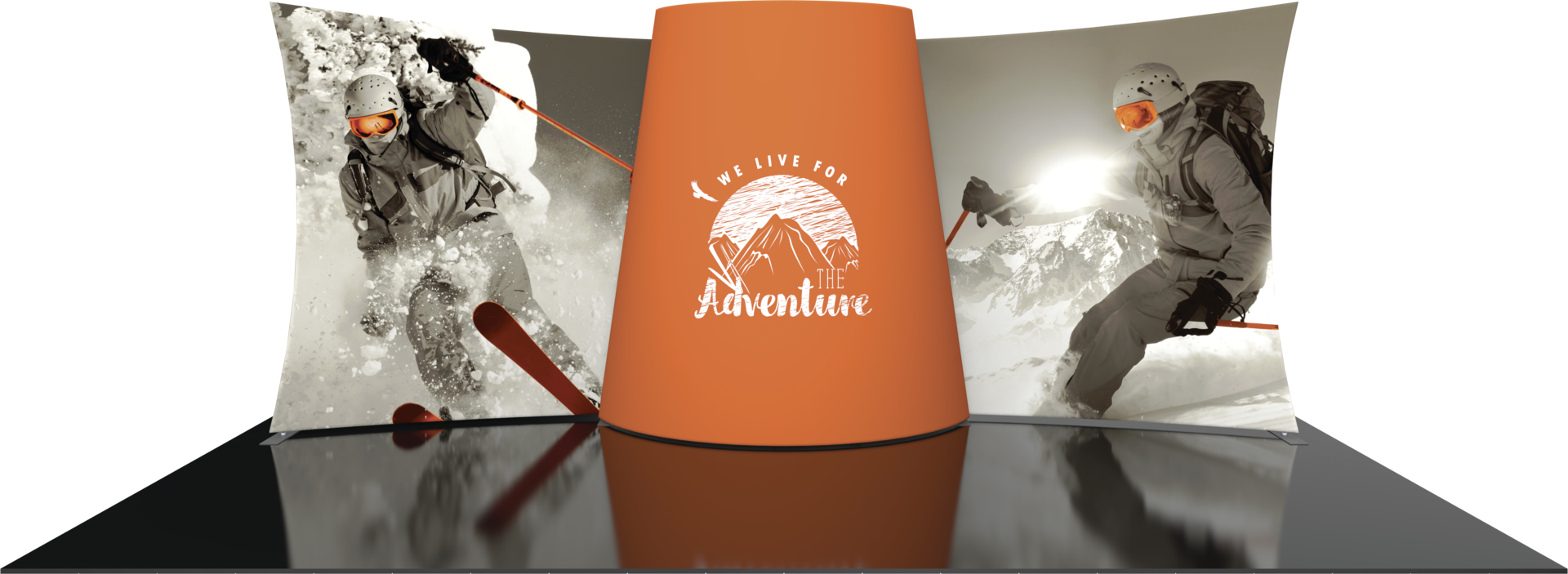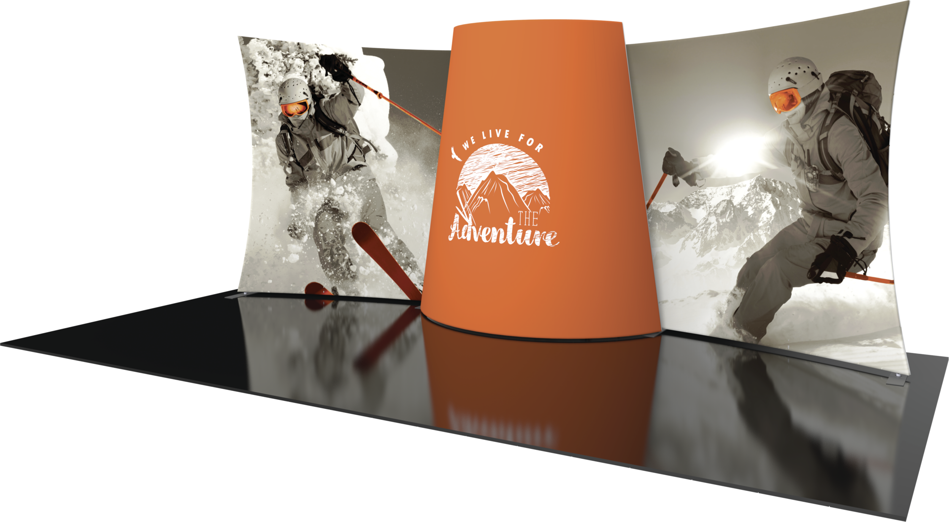 Formulate® Designer Series 20ft Backwall Kit 03 is designed to provide three areas for messaging and branding with a uniqe and stylish apperance. The kit includes two aluminum tube frames, and two zipper pillowcase fabric graphics. Simply connect the simple tube frames, pull the pillowcase fabric graphic(s) over the frame and zip.