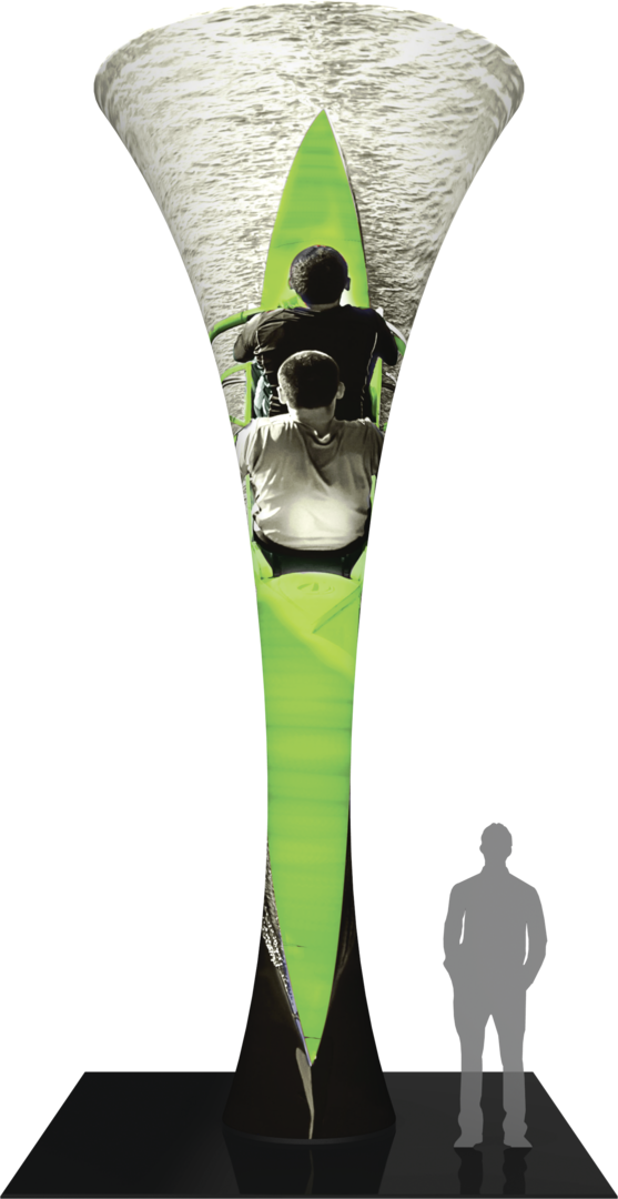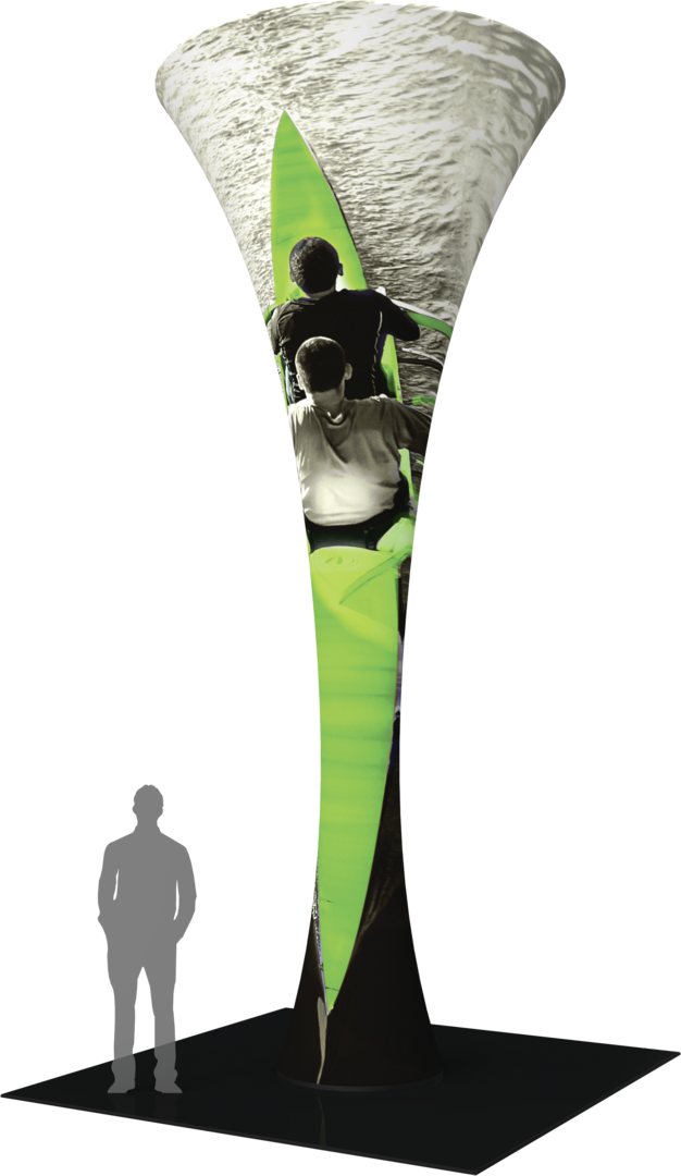 The 20ft Formulate® Fabric Funnel 01 can transform any environment through form, fabric and lighting. Formulate Funnel 01 measures 20ft tall, and features a heavy-duty wooden base and silver powder coated truss interior to create a dynamic, towering structure that commands attention. Fabric graphics feature a zipper at the top and a silicone edge at the bottom for easy assembly. Accent LED light kits are not included, but can be purchased a la carte to add a glow within the funnel. Funnel 01 packs down into two wheeled OCH2 cases for easy storage and transport.