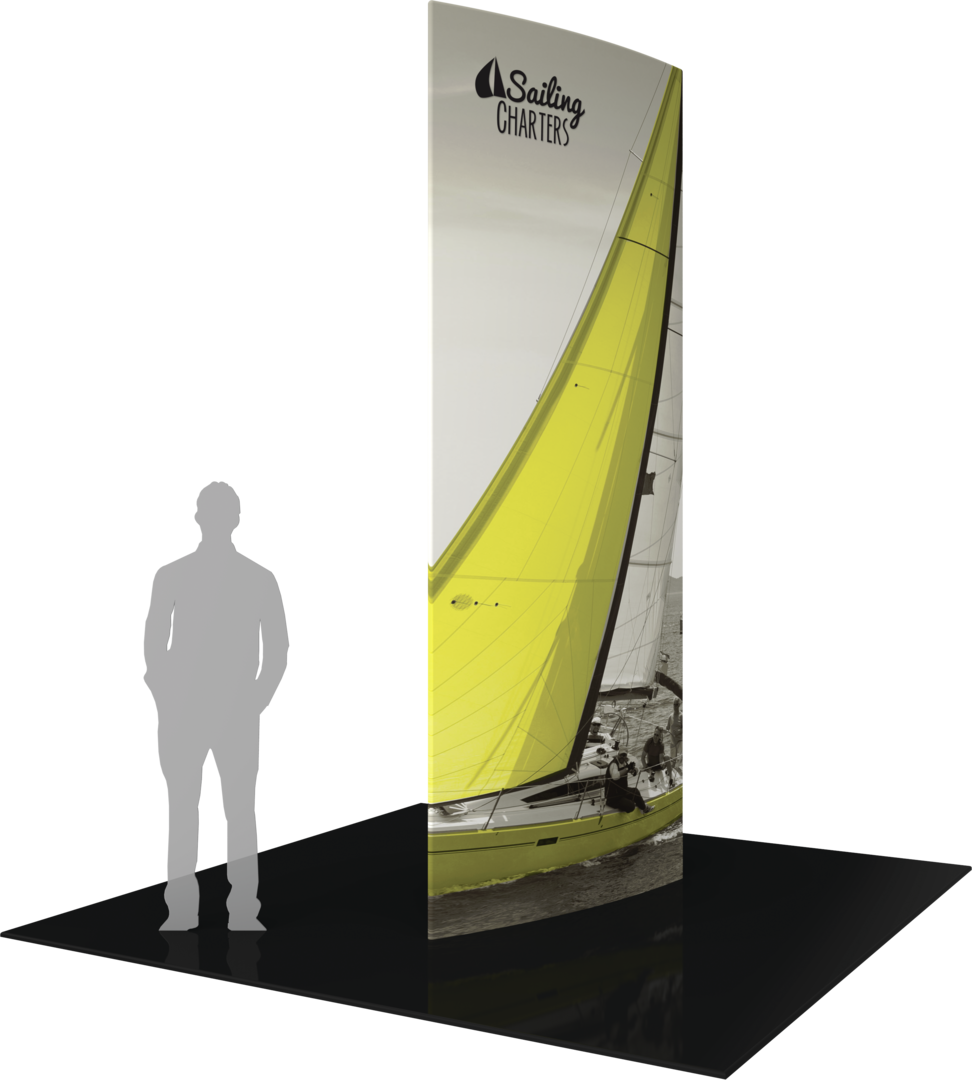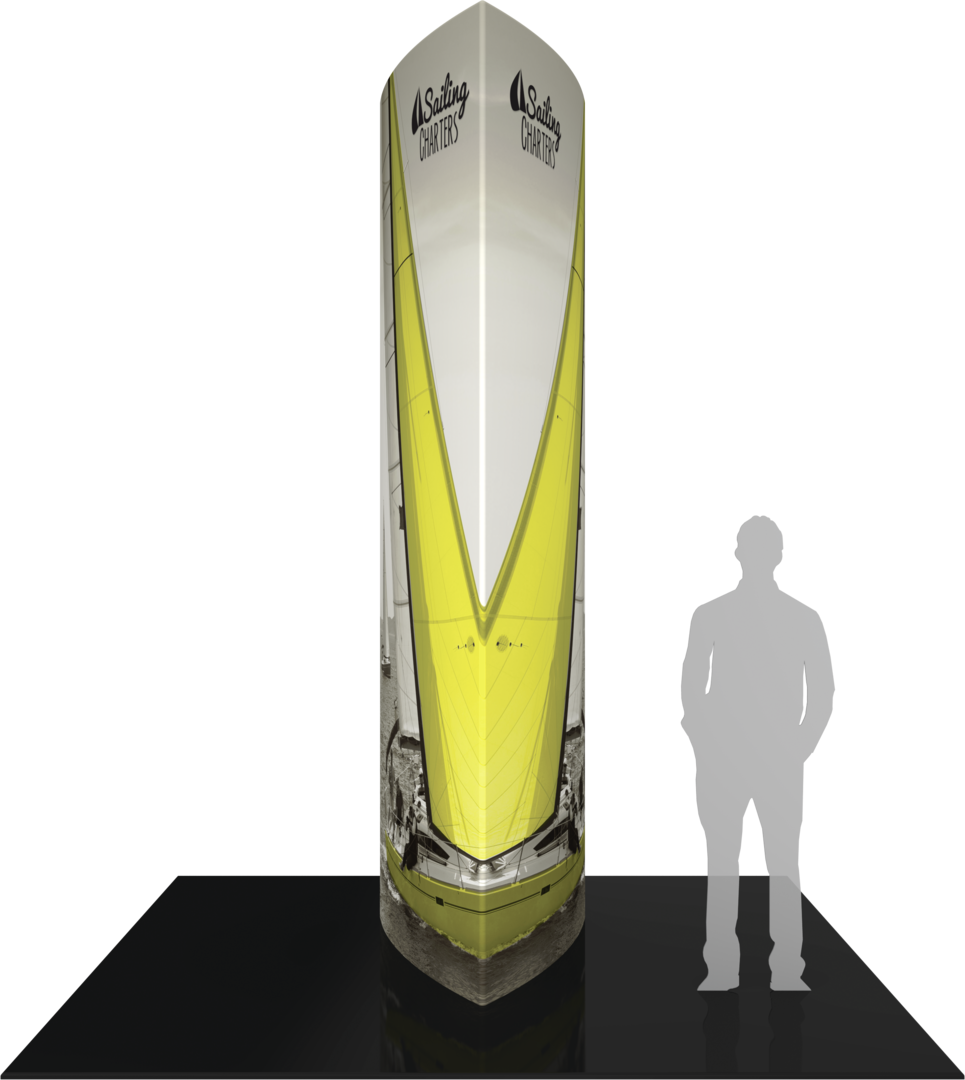 The Formulate® 12ft Shield tower combines the latest developments in fabric printed technology with aluminum tube frames to add dimension, decor and sculpture to any event, stage set, trade show booth or interior space. Formulate towers accommodate internal LED lighting. Accent LED light not included, but can be incorporated to add glow within the structures.