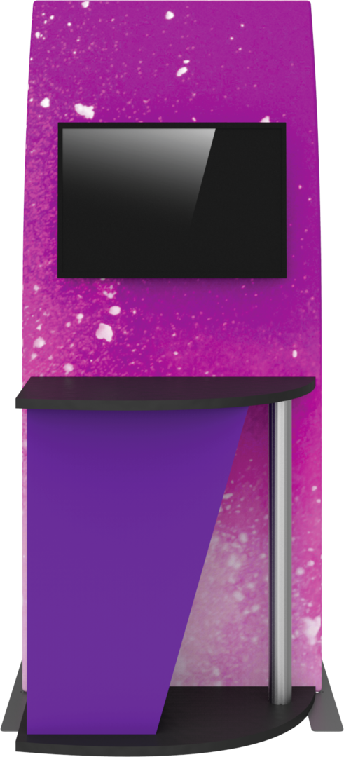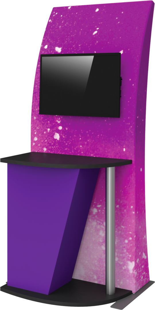 Formulate® Kiosk 04 couples a lightweight aluminum tube frame with a state- of-the-art printed stretch zipper pillowcase fabric graphic to create a funky and functional multimedia kiosk. An integrated monitor mount and fabric counter provide space for digital messaging and display, and the gently curving back panel draws the eye.