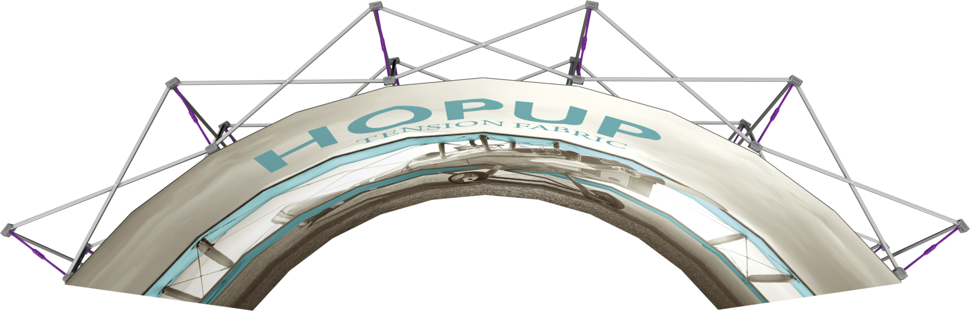 – Lightweight 13ft wide (5 quad x 4 quad) extra tall curved anodized silver frame