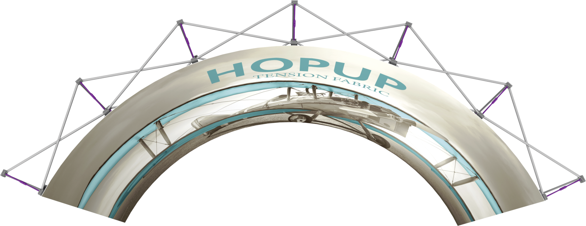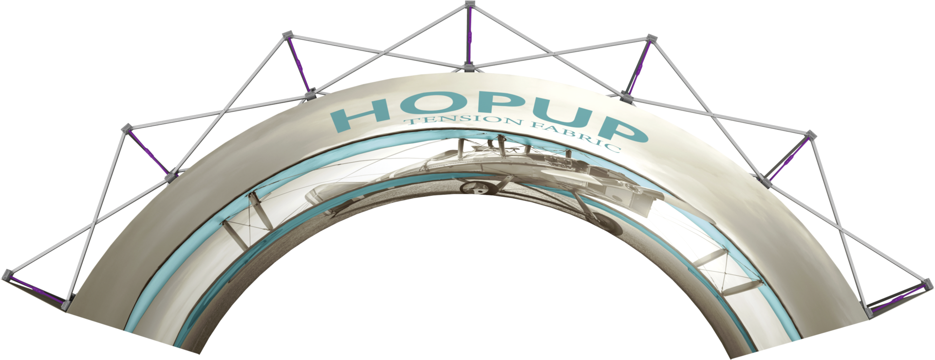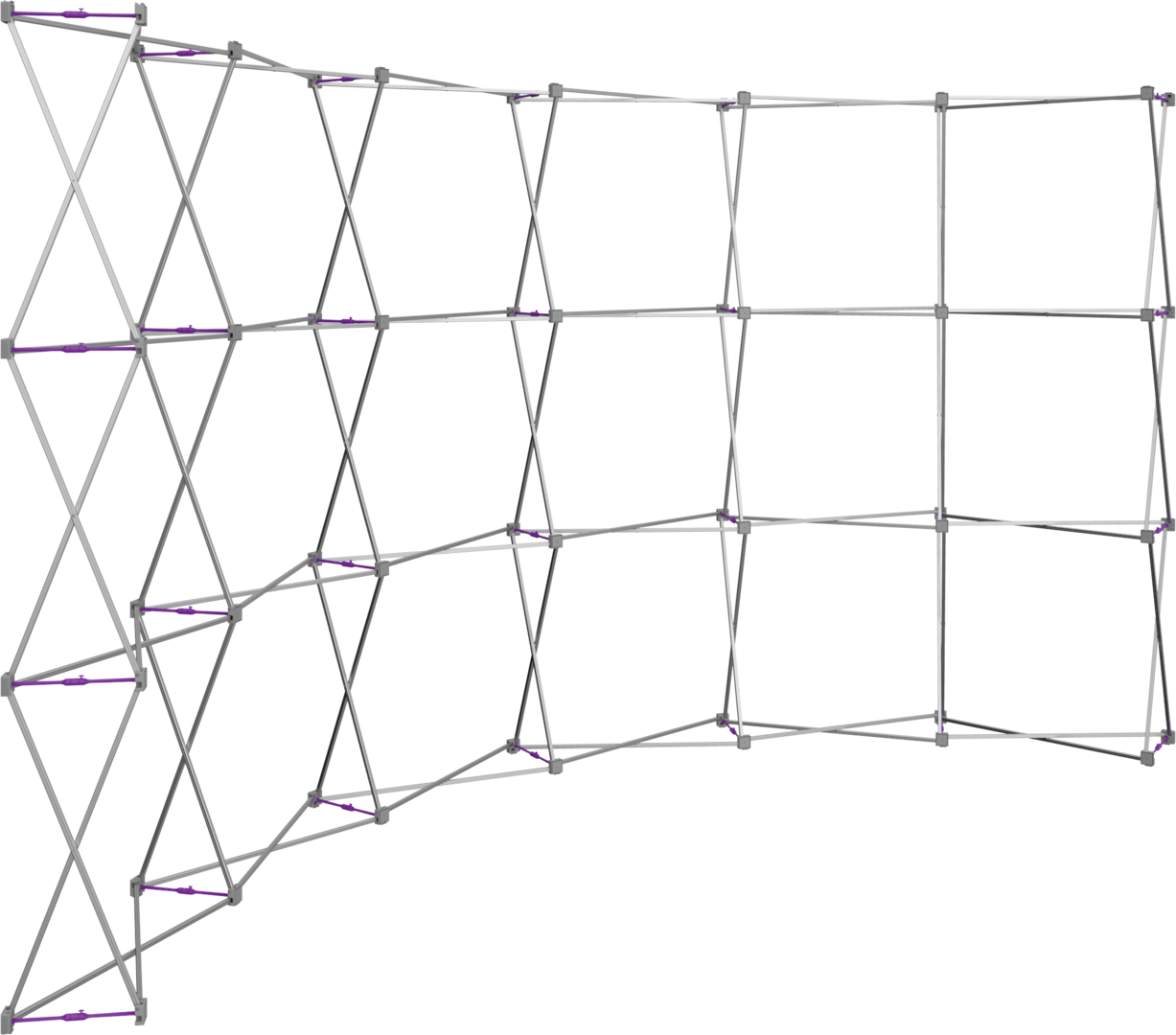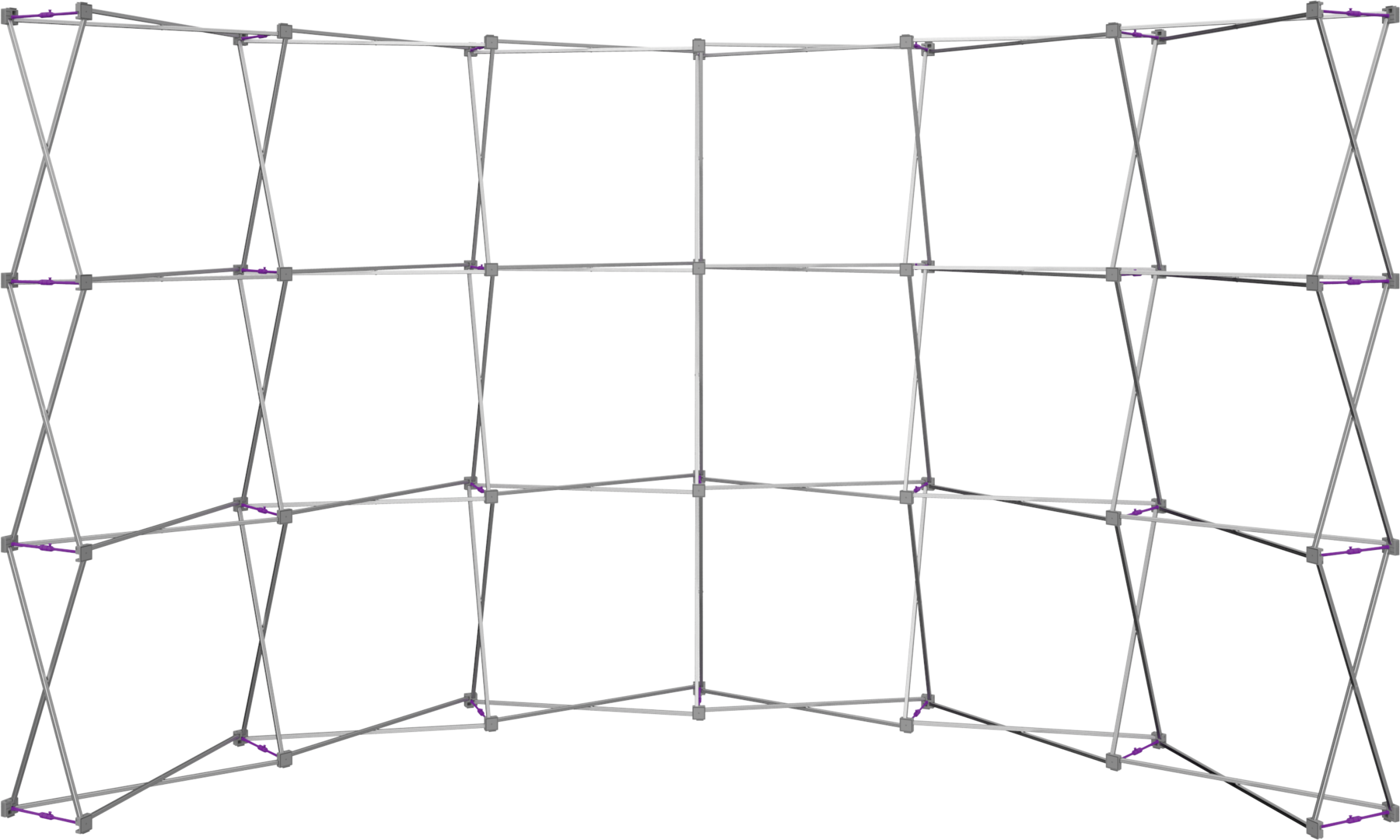 – Lightweight 15ft wide (6 quad x 3 quad) curved anodized silver frame