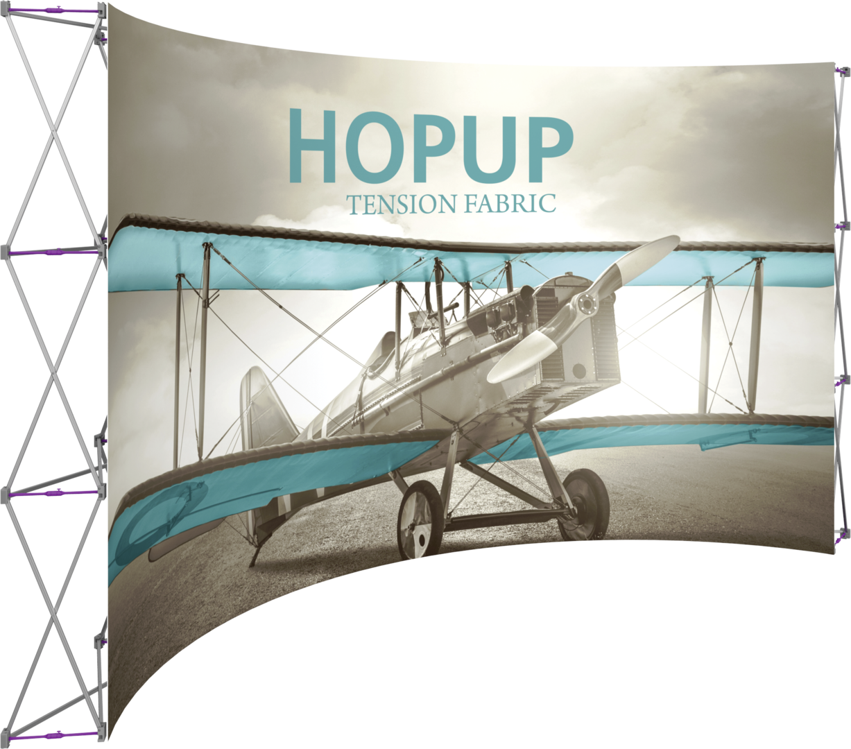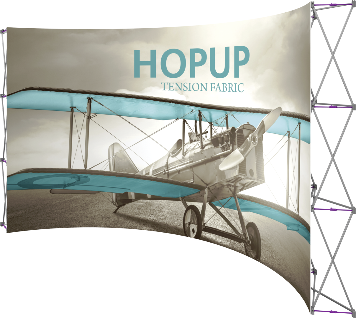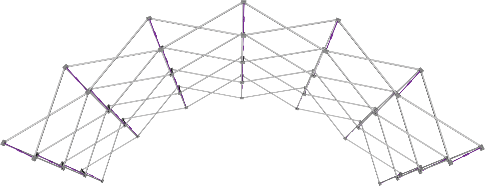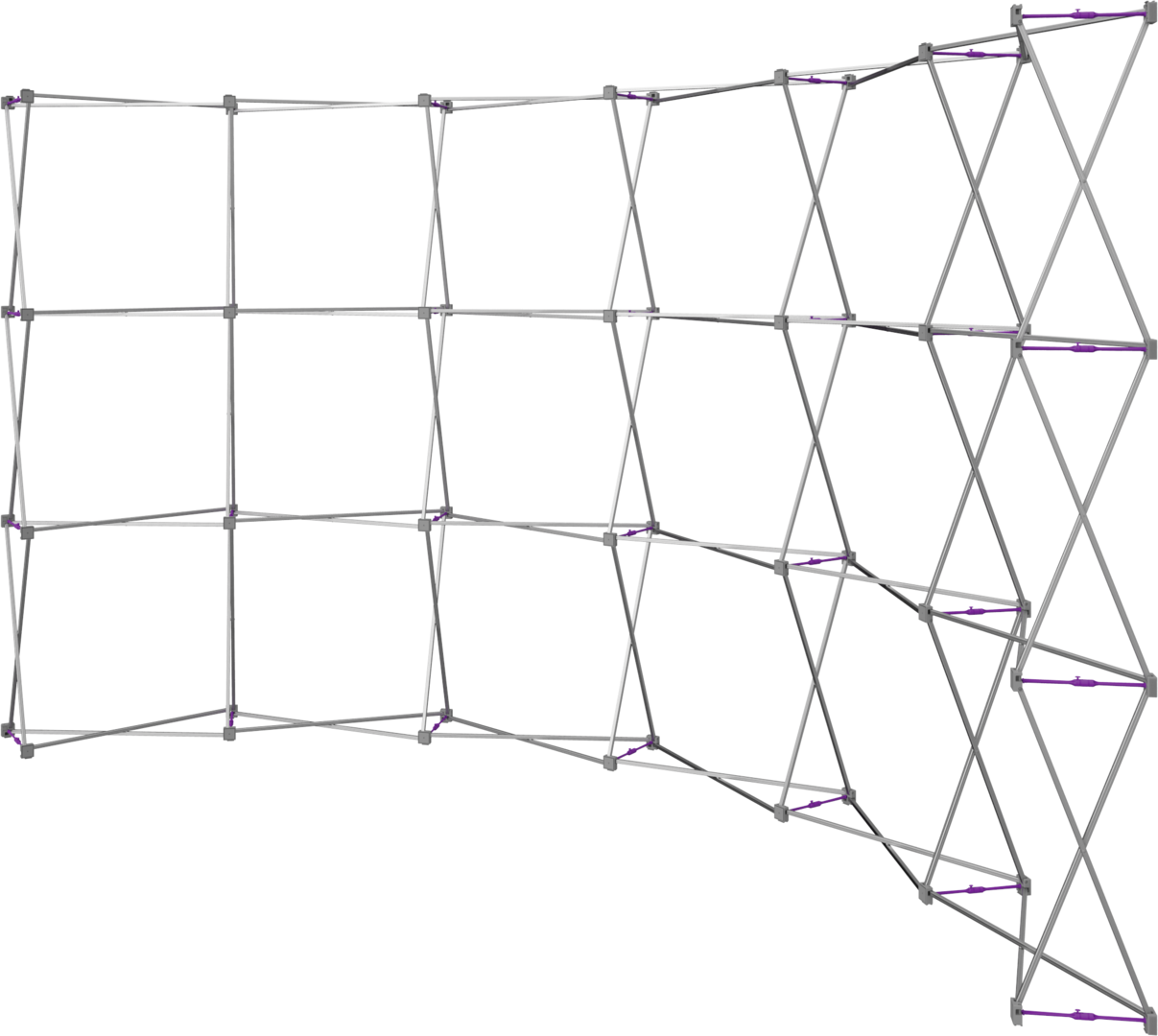 – Lightweight 15ft wide (6 quad x 3 quad) curved anodized silver frame