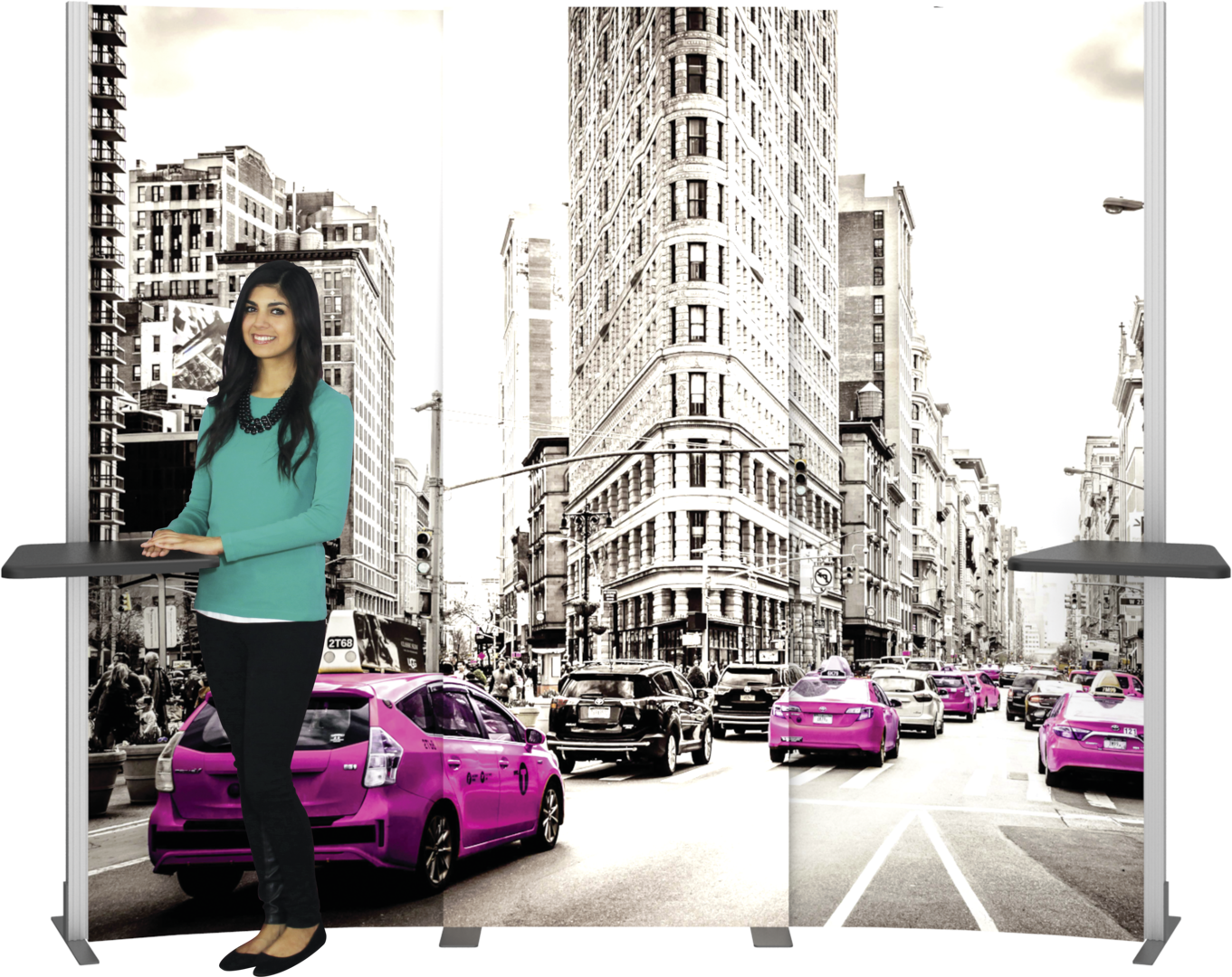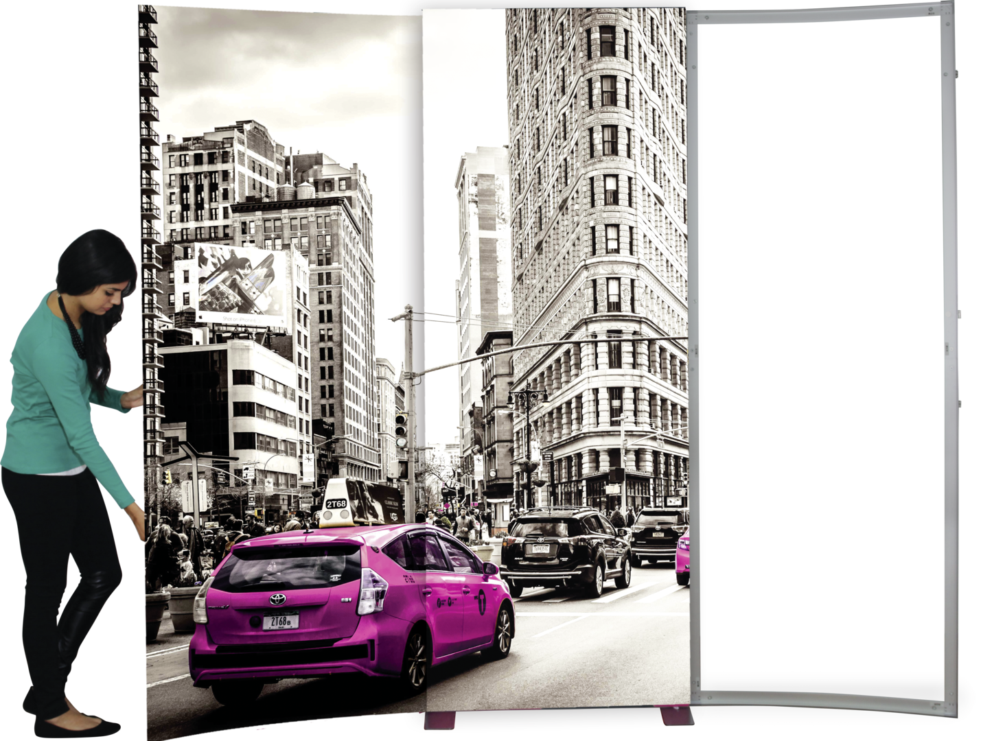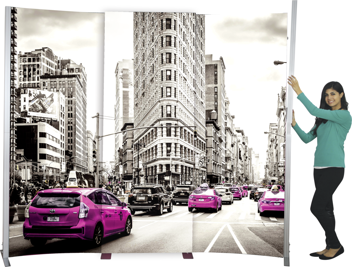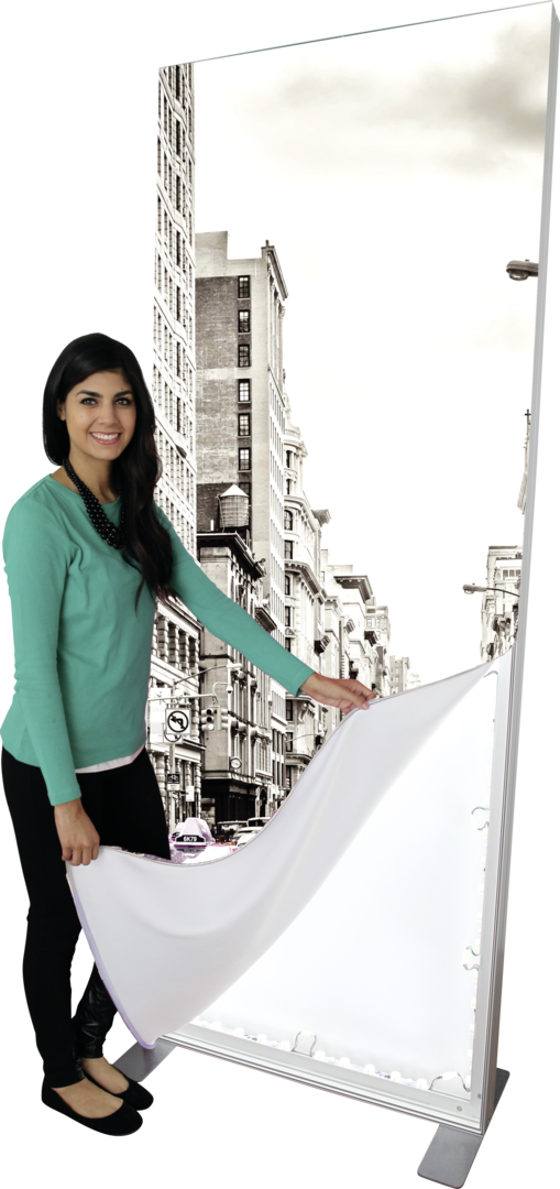 – Single-sided SEG dye-sublimated push-fit fabric graphics