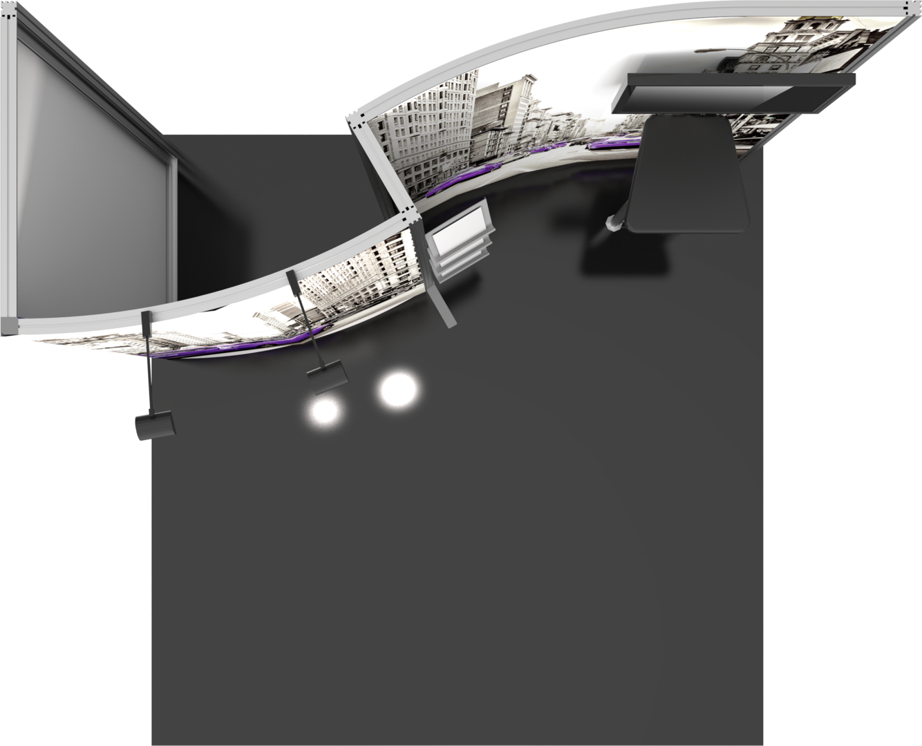 – Kit includes frame, three fabric graphic panels, one table, two 200 LED floodlights, one medium monitor mount*, three literature holders and two molded OCH2 cases