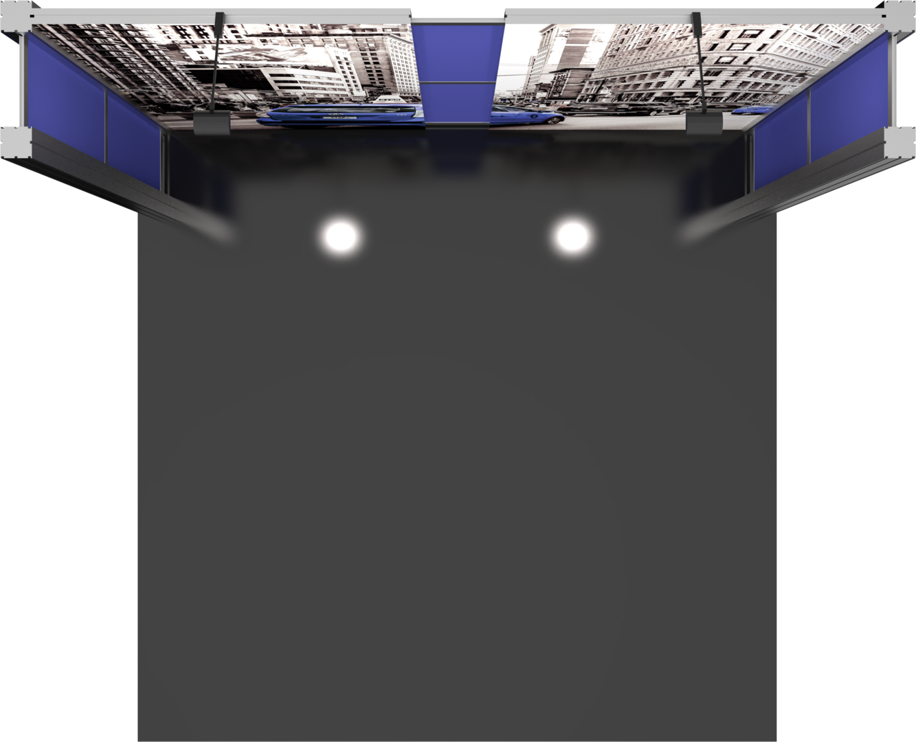 – Kit includes frame, two fabric graphic panels, six white Sintra, two 200 LED floodlights and two molded OCH2 cases