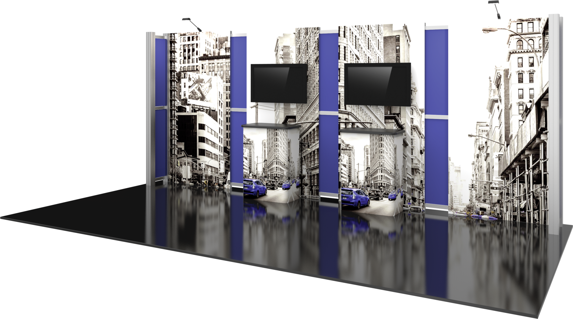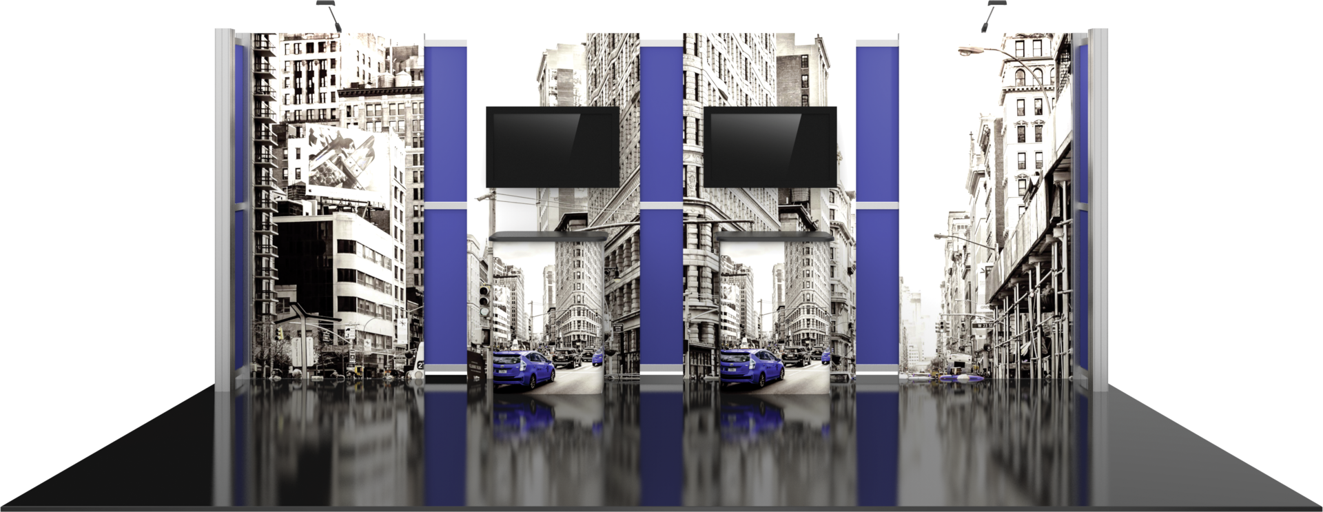 – Reconfigurable into 10’x10′ inline display – additional components may be required