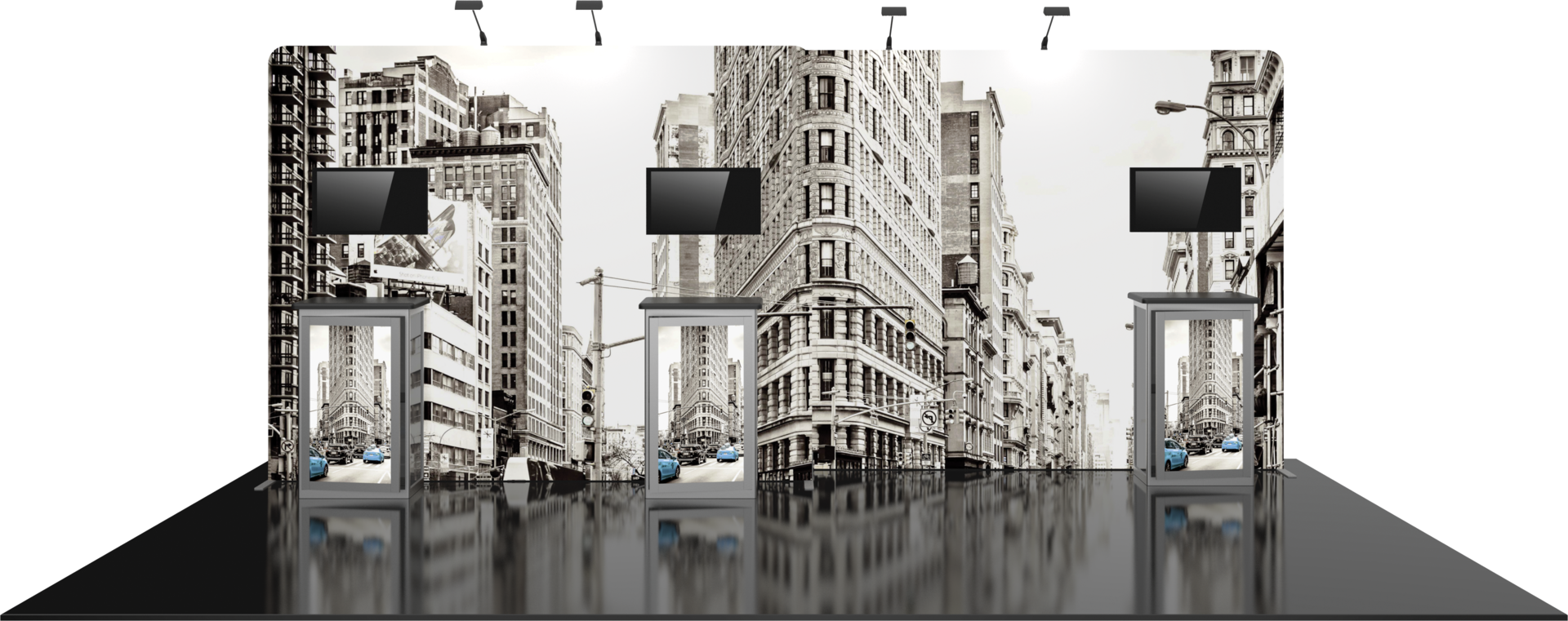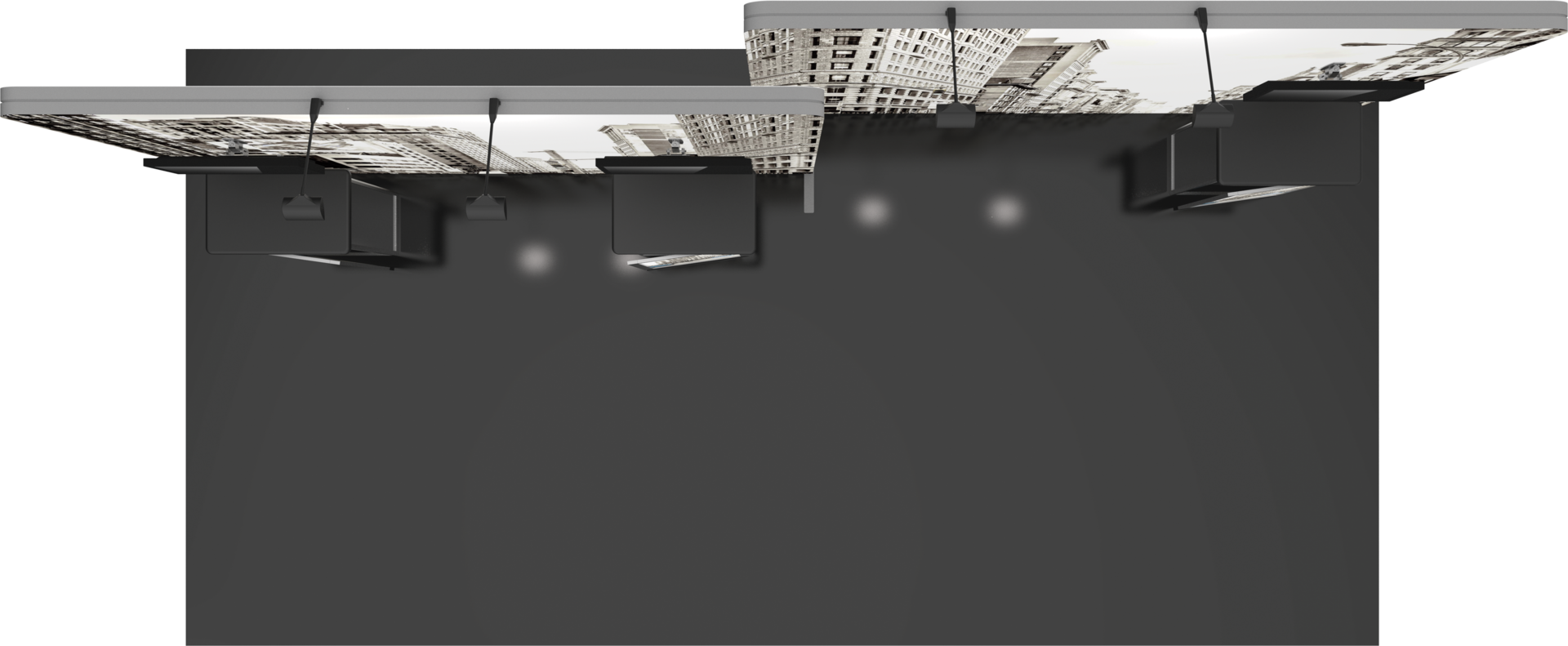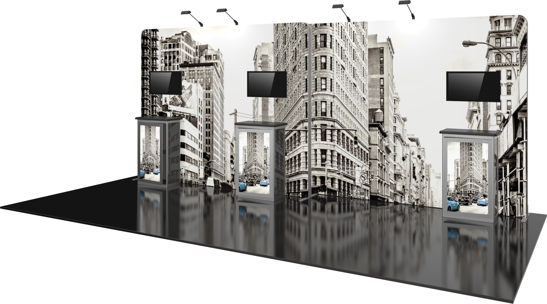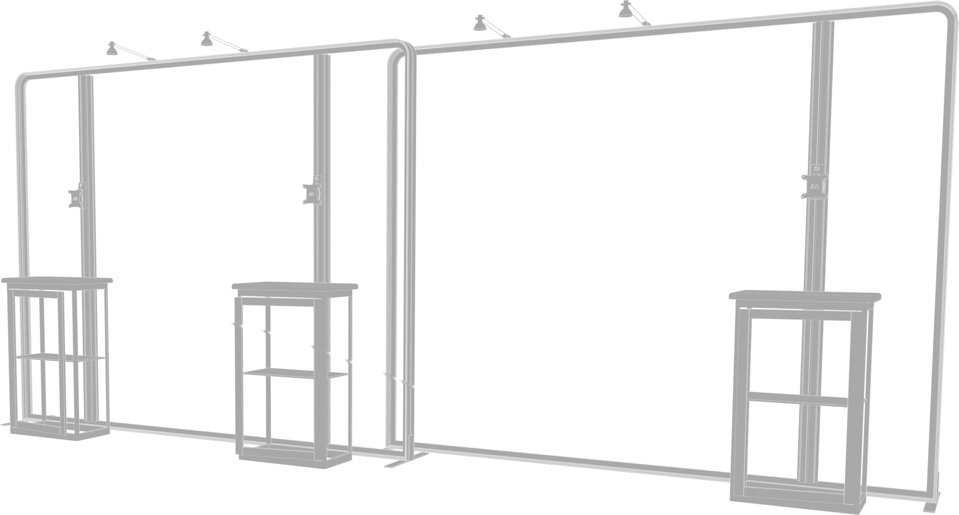 – Reconfigurable into 10’x10′ inline display – additional components may be required