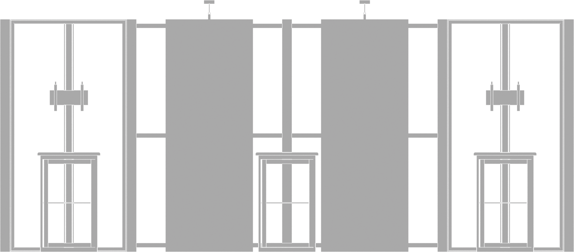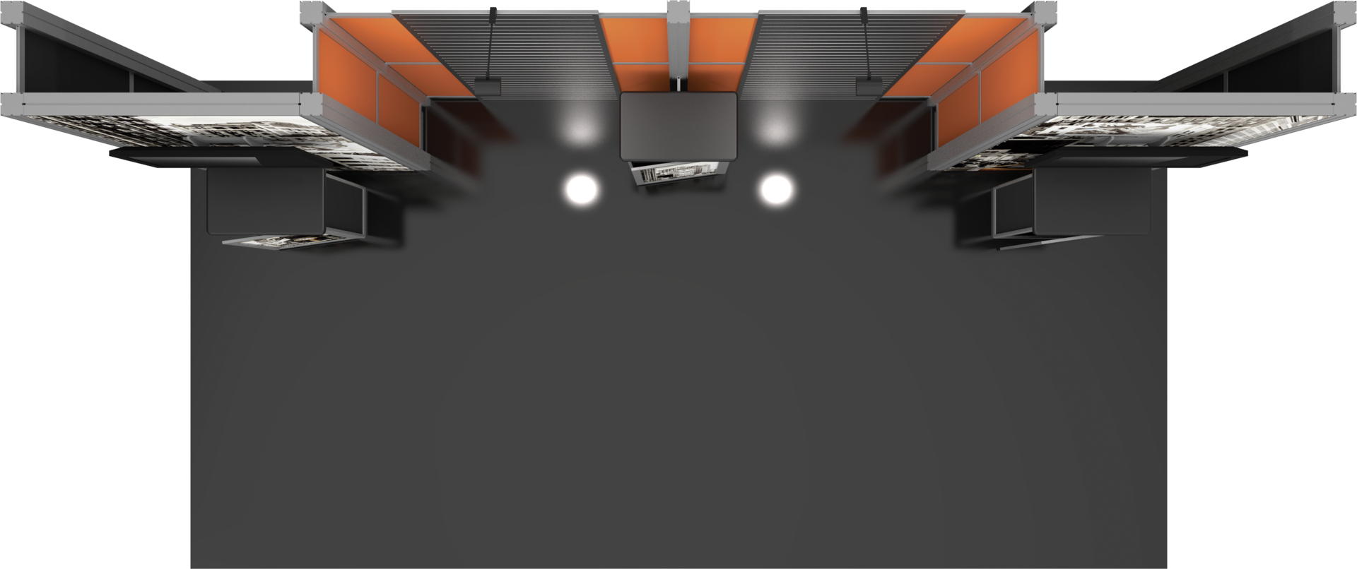 – Kit includes frame, two slot walls, two fabric graphic panels, sixteen Sintra infills, three backwall counters, two medium monitor mounts*, two 200 LED floodlights and one molded OCH2 case and one SCRATE case.