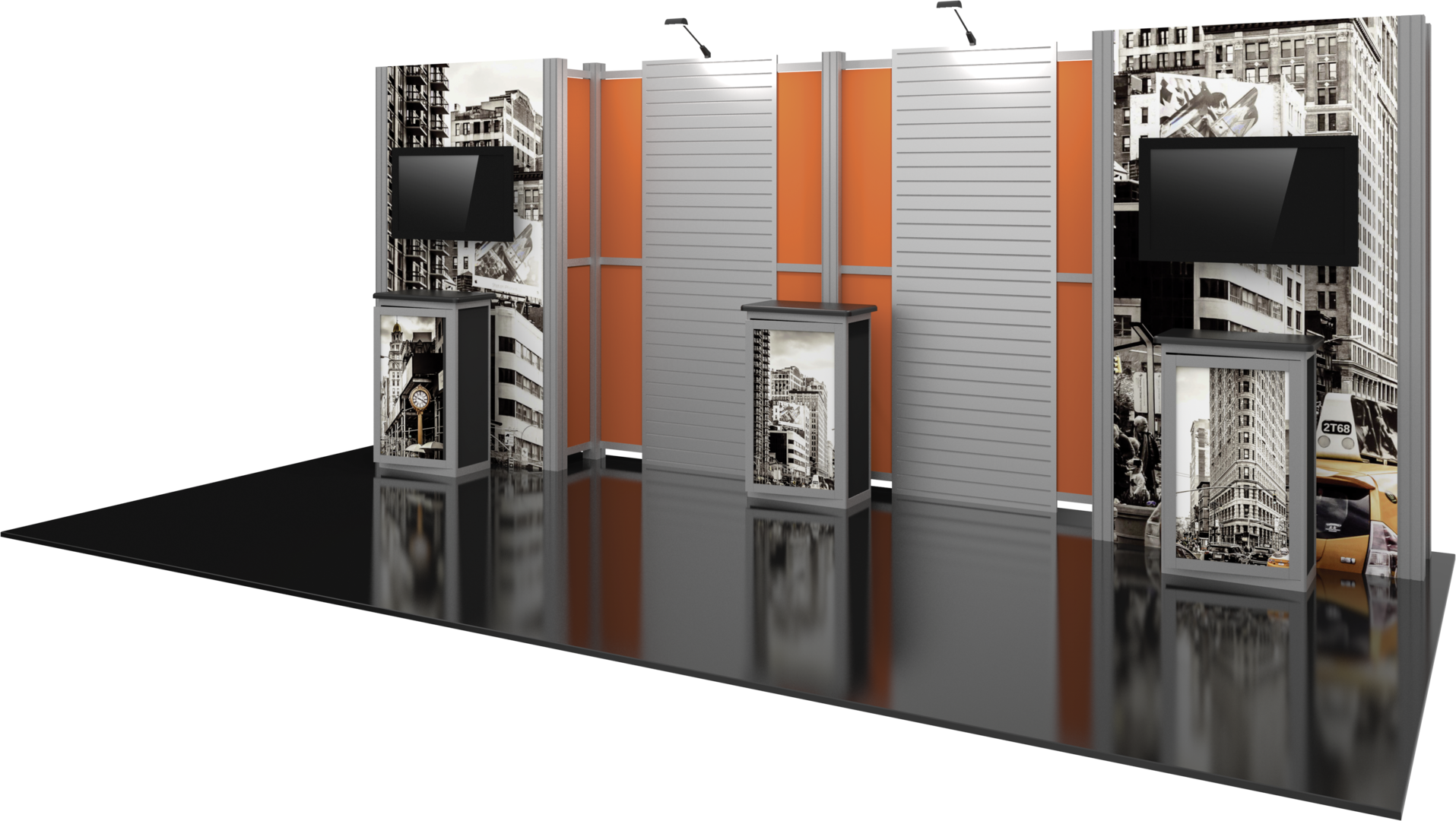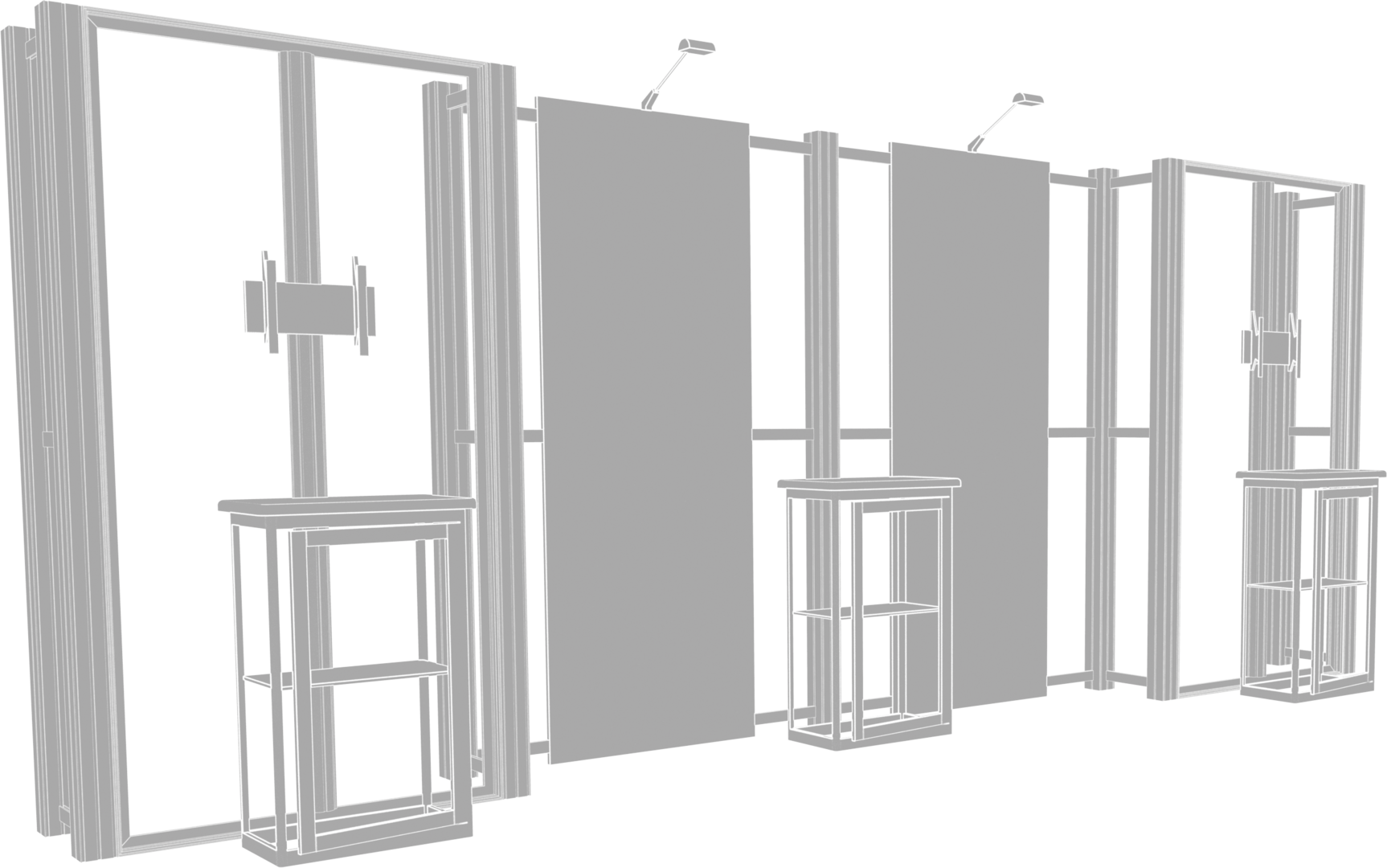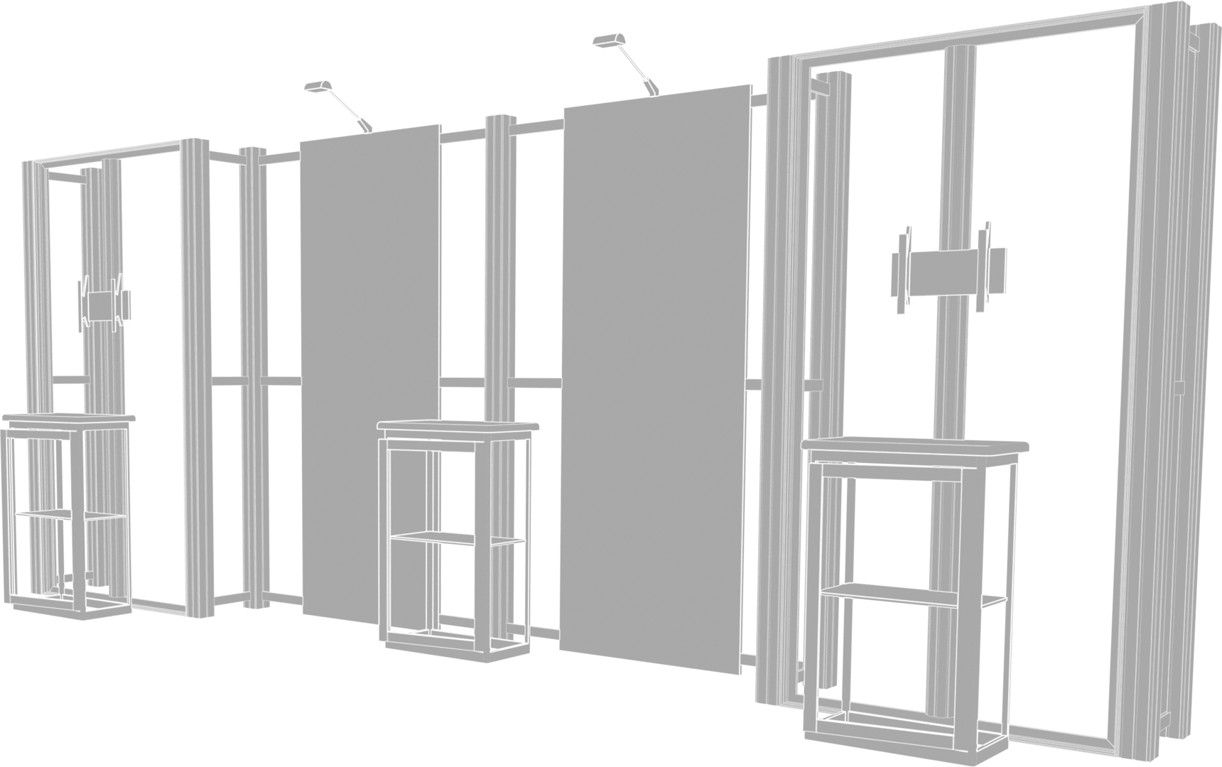 – Reconfigurable into 10’x10′ inline display – additional components may be required