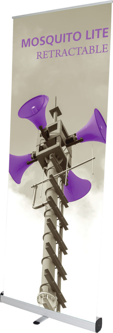 The Mosquito Lite retractable banner stand is a lighter weight version of the Mosquito 800. The Mosquito Lite is easy to use with a snap rail and bungee pole, making set up, take down and shipping simple. It is available for purchase in bulk packs of six or individually.