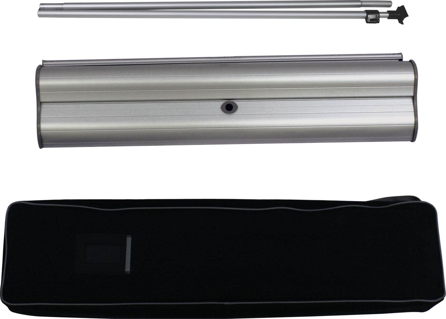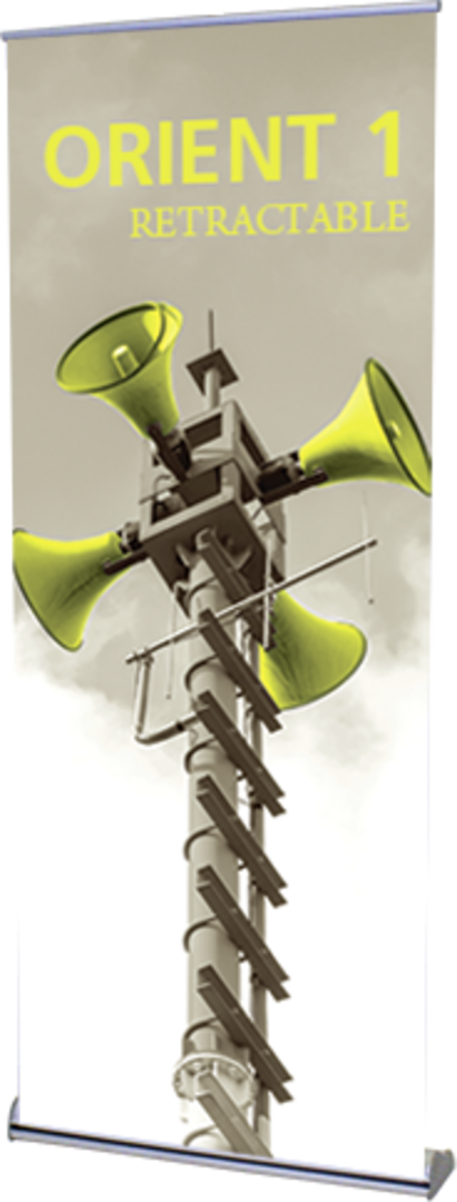 The Orient 800 is a simplistic and elegantly designed retractable banner stand. It is finished in anodized silver or black with heavy duty molded end caps. Variable graphic height between 60.5″ and 83.25″. Padded carry bag is included.