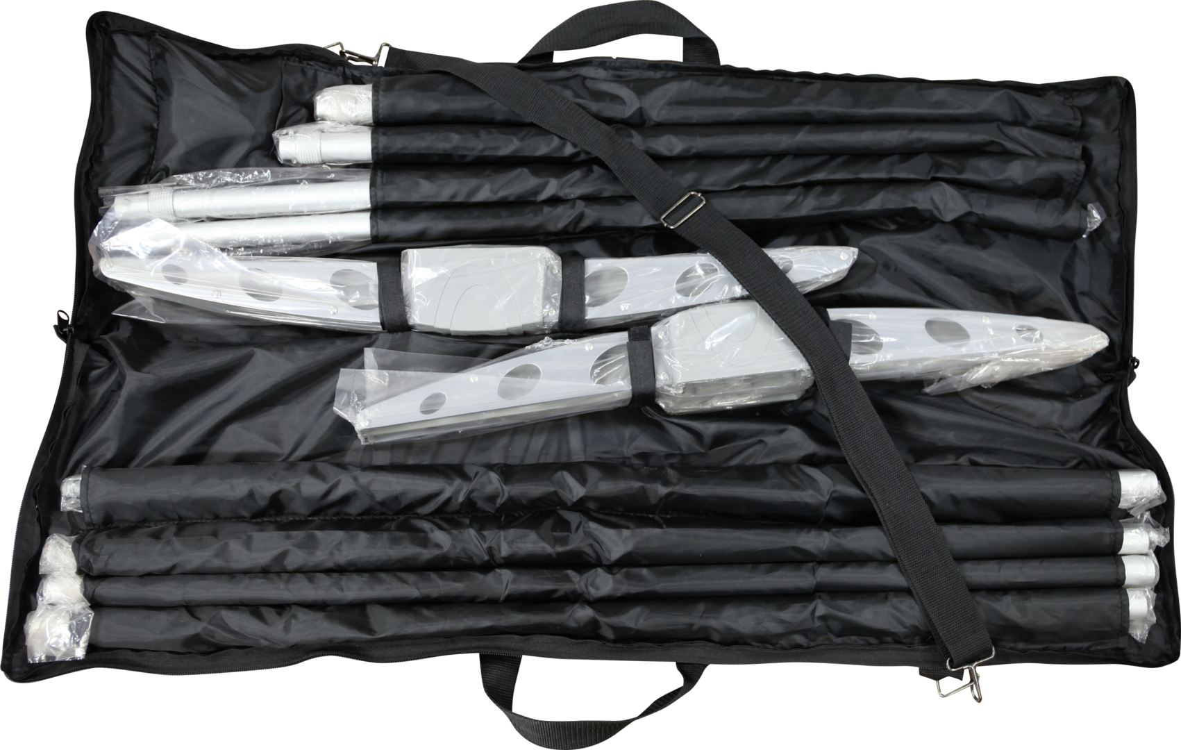 – Telescopic poles for adjustable graphic width and height