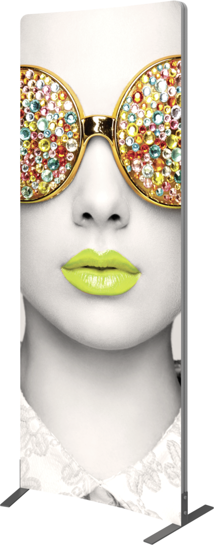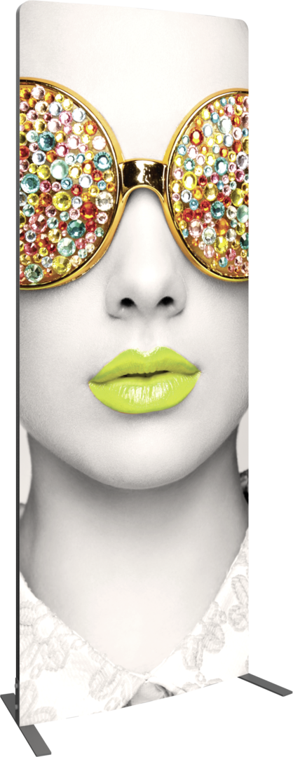 Vector Frame™ curved fabric banner 01 is a modern, extrusion-based fabric graphic banner display measuring 39.33″W x 94.74″H that combines 50mm aluminum extrusion frames with push-fit fabric graphics. Vector Frame Curved fabric banner 01 is a versatile single or double sided banner, backwall or interior display. Use as a concave or convex shape for increased versatility.
