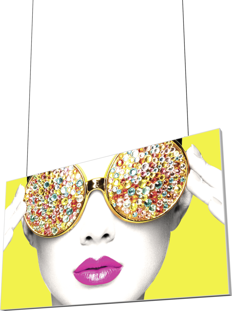 The Vector Frame™ Hanging Light Box 10′ x 6′ is an impressive, extrusion-based rectangular illuminated hanging structure that is sure to captivate on the show floor. This 10′ wide display features pre-attached LED lighting strips and single or double-sided push-fit fabric graphics. Rigging and electrical from the ceiling is required. Ideal for illuminated messaging in retail and tradeshow environments.