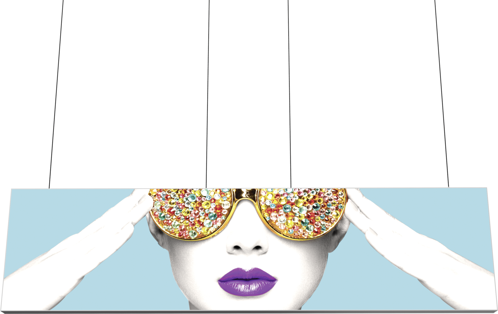 The Vector Frame™ Hanging Light Box 15′ x 4′ is an impressive, extrusion-based rectangular illuminated hanging structure that is sure to captivate on the show floor. This 15′ wide display features pre-attached LED lighting strips and single or double-sided push-fit fabric graphics. Rigging and electrical from the ceiling is required. Ideal for illuminated messaging in retail and tradeshow environments.