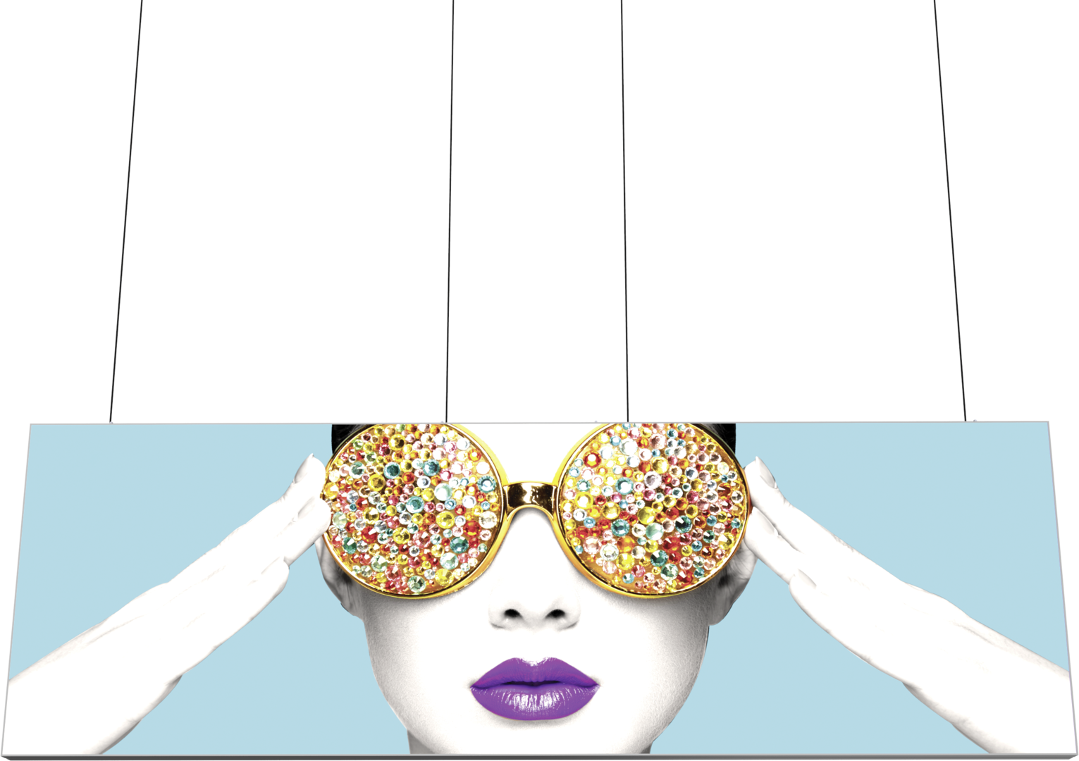 The Vector Frame™ Hanging Light Box 15′ x 5′ is an impressive, extrusion-based rectangular illuminated hanging structure that is sure to captivate on the show floor. This 15′ wide display features pre-attached LED lighting strips and single or double-sided push-fit fabric graphics. Rigging and electrical from the ceiling is required. Ideal for illuminated messaging in retail and tradeshow environments.