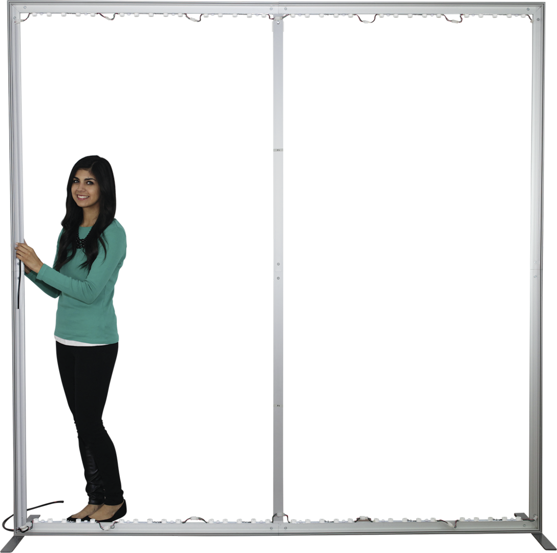 – Kit includes frame, one illuminated fabric graphic panel, four rigid graphic accents, and one wheeled molded case