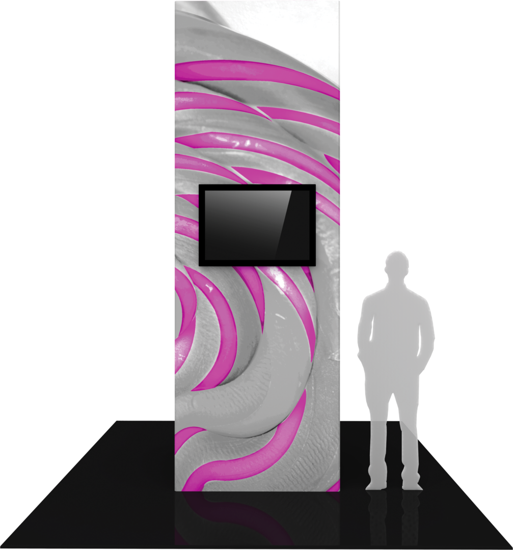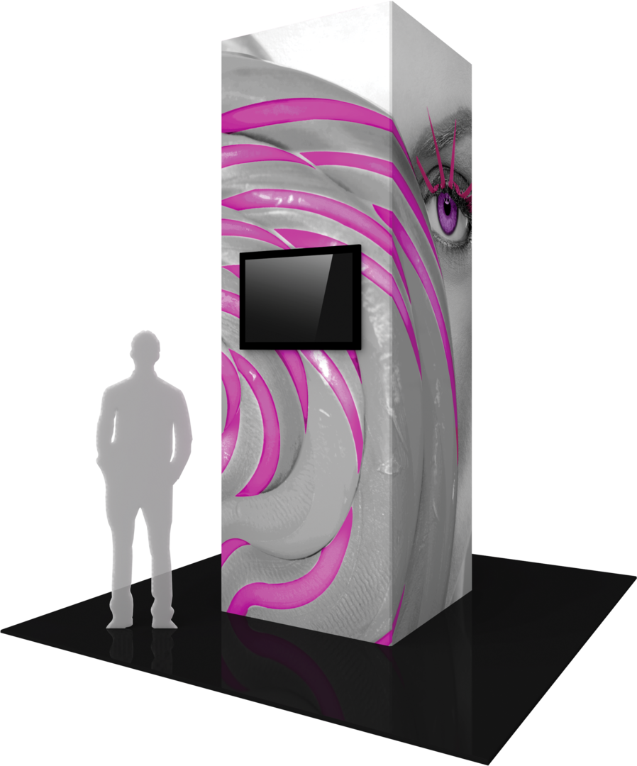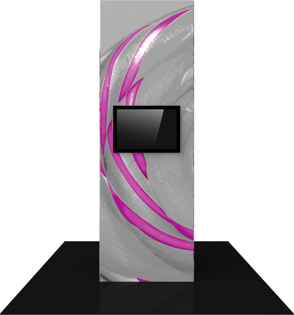 The Vector Frame™ Modular Monitor Tower 06 is an impressive architectural structure coupling extrusion frames with push-fit fabric graphics and a dual monitor mount kit to create a commanding display for any interior environment. Measuring 12’h and 4′ square at the top and bottom, this rectangular display is the perfect statement piece. The Vector Frame Tower 06 can accommodate an internal lighting kit (sold separately) for added drama. Each kit comes with a molded, wheeled case for easy storage and transportation.