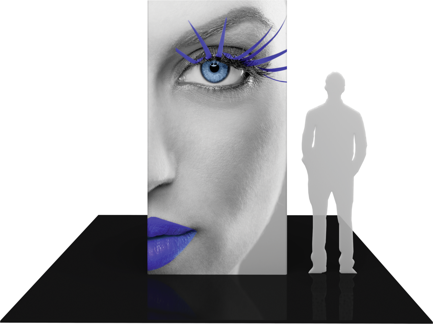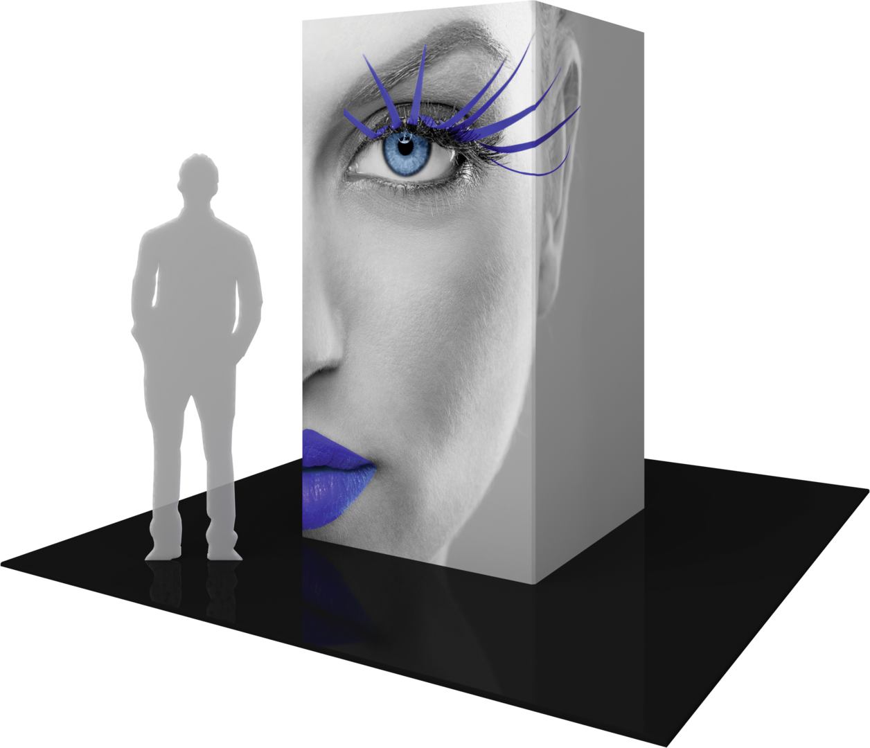 The Vector Frame™ Modular Tower 02 is an impressive architectural structure utilizing push-fit fabric graphics and extrusion based frames to create a commanding display for any interior environment. Measuring 8’h and 4′ square at the top and bottom, this rectangular display is the perfect statement piece. Each kit comes with a molded, wheeled case for easy storage and transportation.