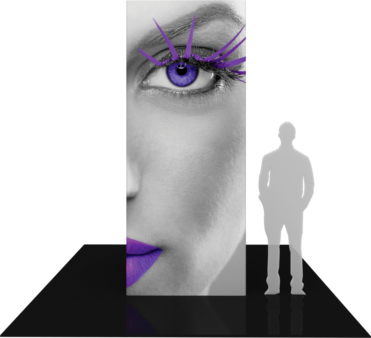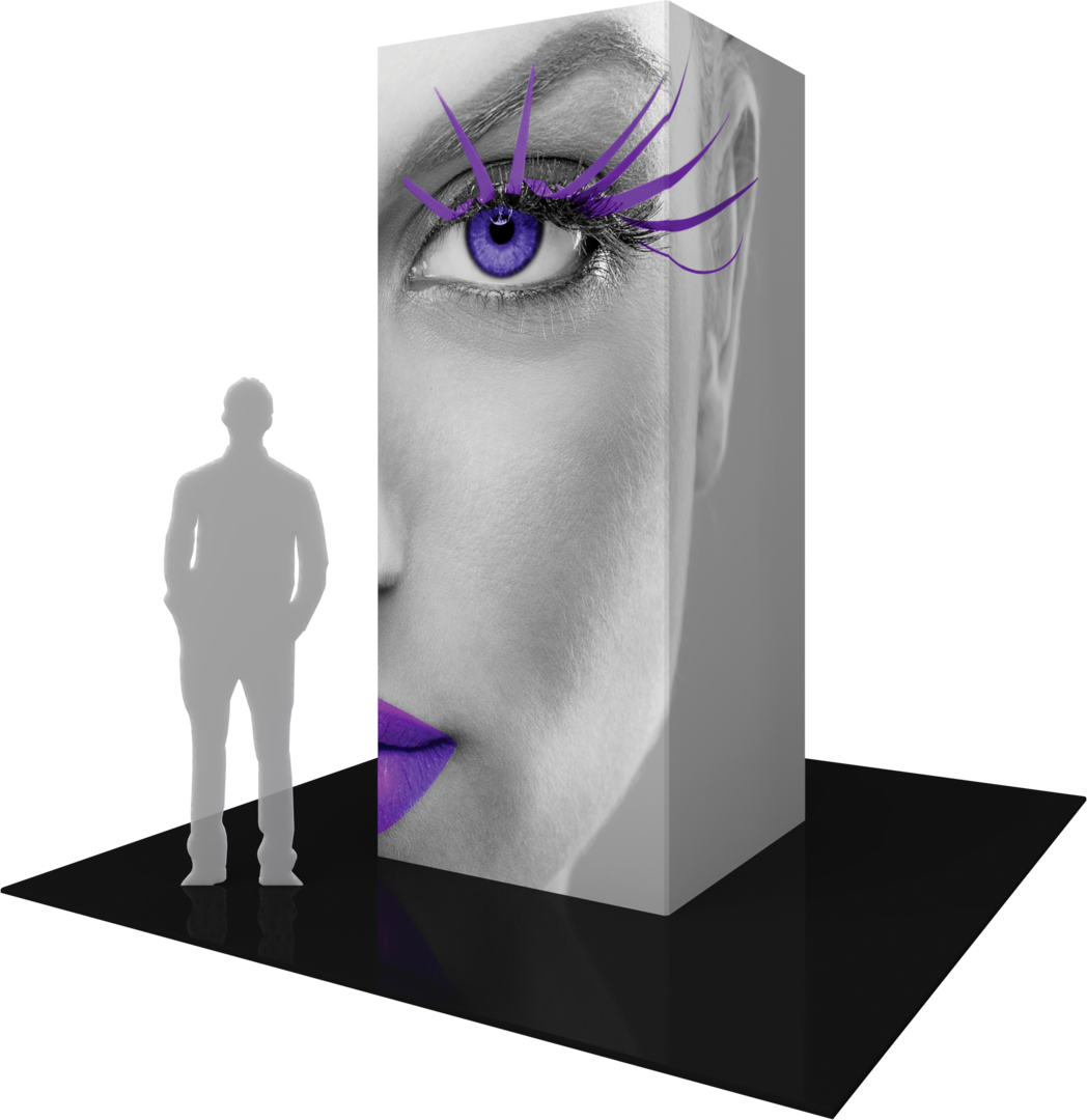 The Vector Frame™ Modular Tower 04 is an impressive architectural structure utilizing push-fit fabric graphics and extrusion based frames to create a commanding display for any interior environment. Measuring 10’h and 4′ square at the top and bottom, this rectangular display is the perfect statement piece. Each kit comes with a molded, wheeled case for easy storage and transportation.