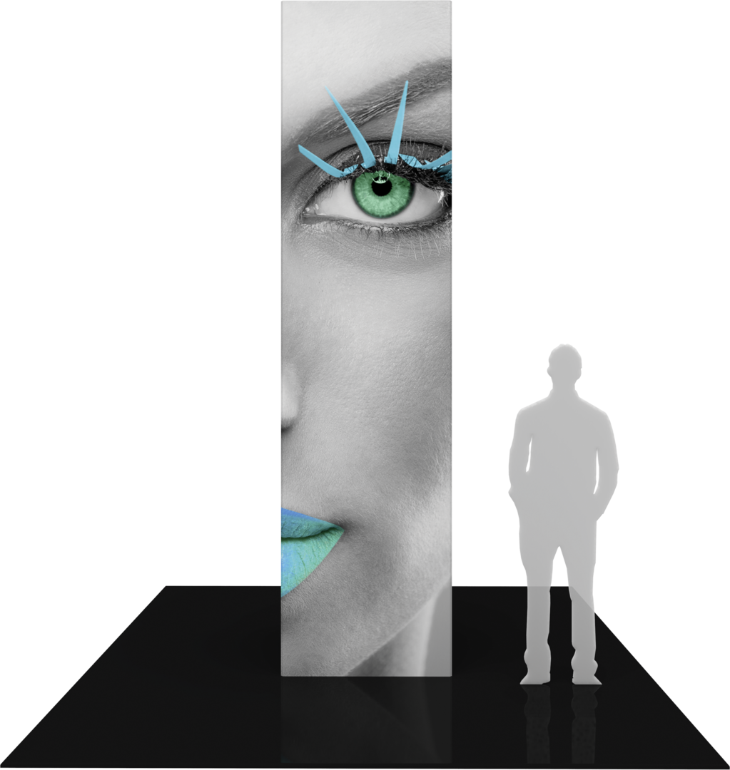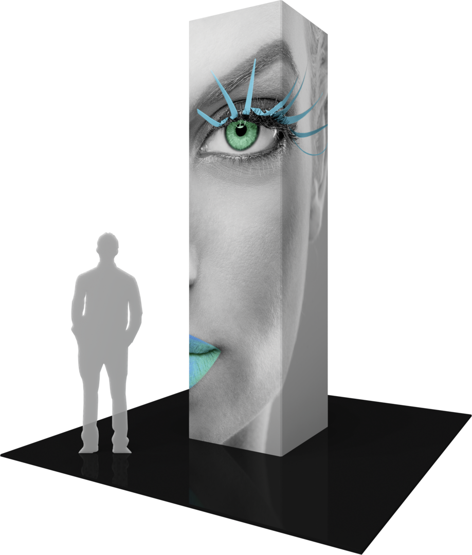 The Vector Frame™ Modular Tower 05 is an impressive architectural structure utilizing push-fit fabric graphics and extrusion based frames to create a commanding display for any interior environment. Measuring 12’h and 3′ square at the top and bottom, this rectangular display is the perfect statement piece. Each kit comes with a molded, wheeled case for easy storage and transportation.