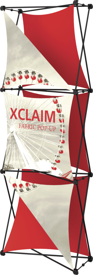 The Xclaim 2.5ft wide (1 Quad x 3 Quad) Kit 04 is a versatile stretch fabric popup display. Add dimension to your event or tradeshow with unique, exciting graphic styles. The Xclaim 2.5ft wide (1 Quad x 3 Quad) Kit 04 is easy to setup, lightweight and portable. The collapsible popup frame is fully magnetic (with magnetic linking connectors), making it simple to assemble and disassemble. Stretch fabric graphics come pre-attached to the frame, making assembly easy and fast. Graphics adhere to the hubs using push-fit attachment technology. Xclaim 2.5ft wide (1 Quad x 3 Quad) Kit 04 comes with graphics, frame and soft case with a shoulder strap.