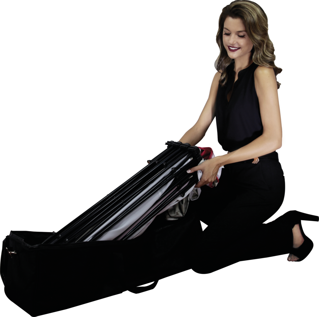 – Collapsible frame uses magnetic locking arms to remain standing
