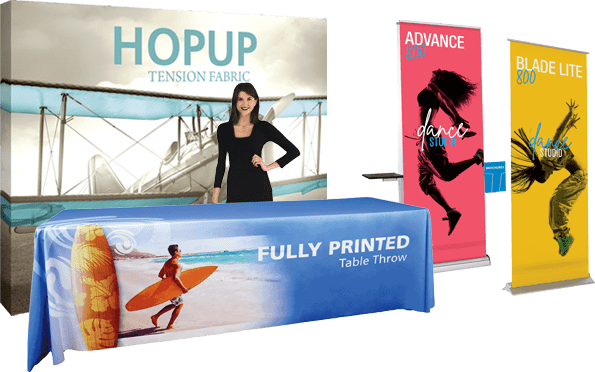 Quickly and easily make an impact with a portable display solution! Browse through a wide range of stylish, portable displays such as banner stands, table covers, and collapsible displays that set up fast and are ideal for use in trade shows, conferences, corporate events, in retail environments, commercial environments and much more.