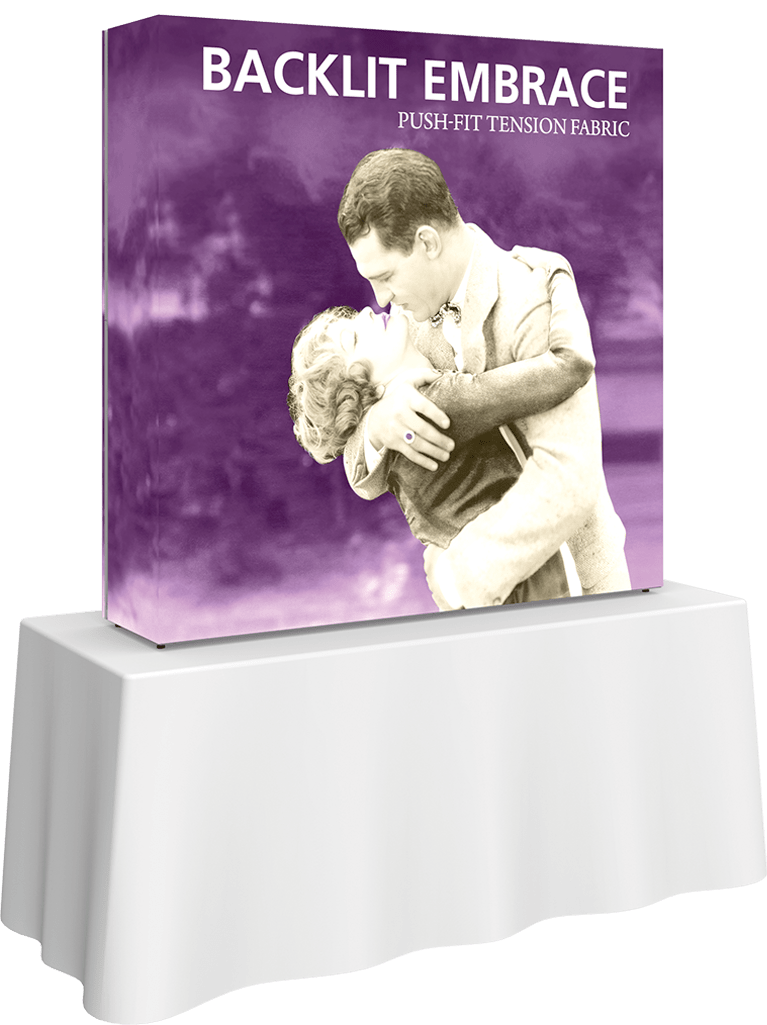 Embrace collapsible displays feature push-fit SEG graphics that easily attach to the pop up frame along the edges. With displays up to 15ft tall and 30ft wide, there’s a solution for every size exhibit.